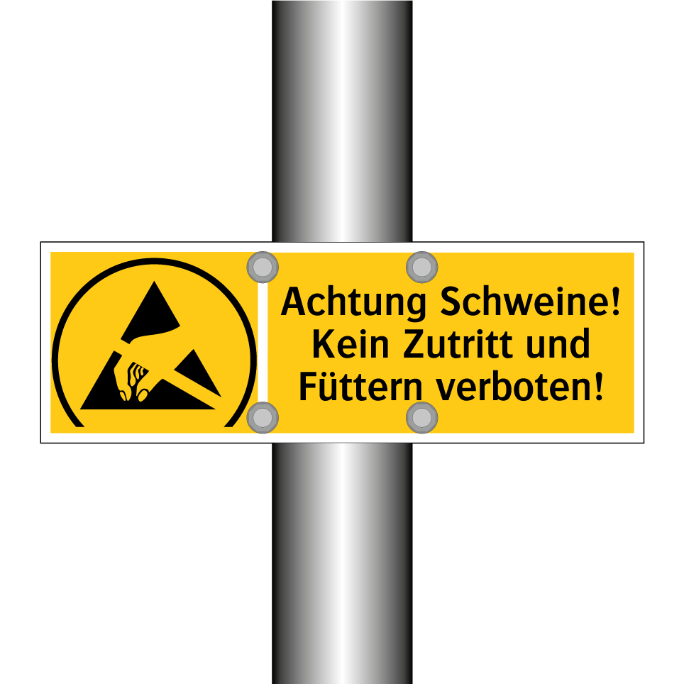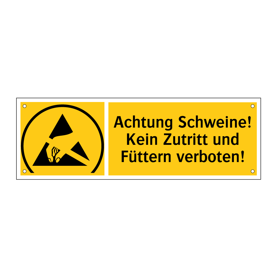 Warnschild mit dem Text Achtung Schweine! Kein Zutritt und Füttern verboten!