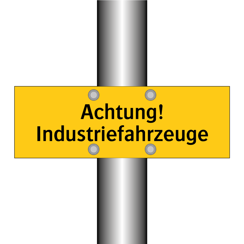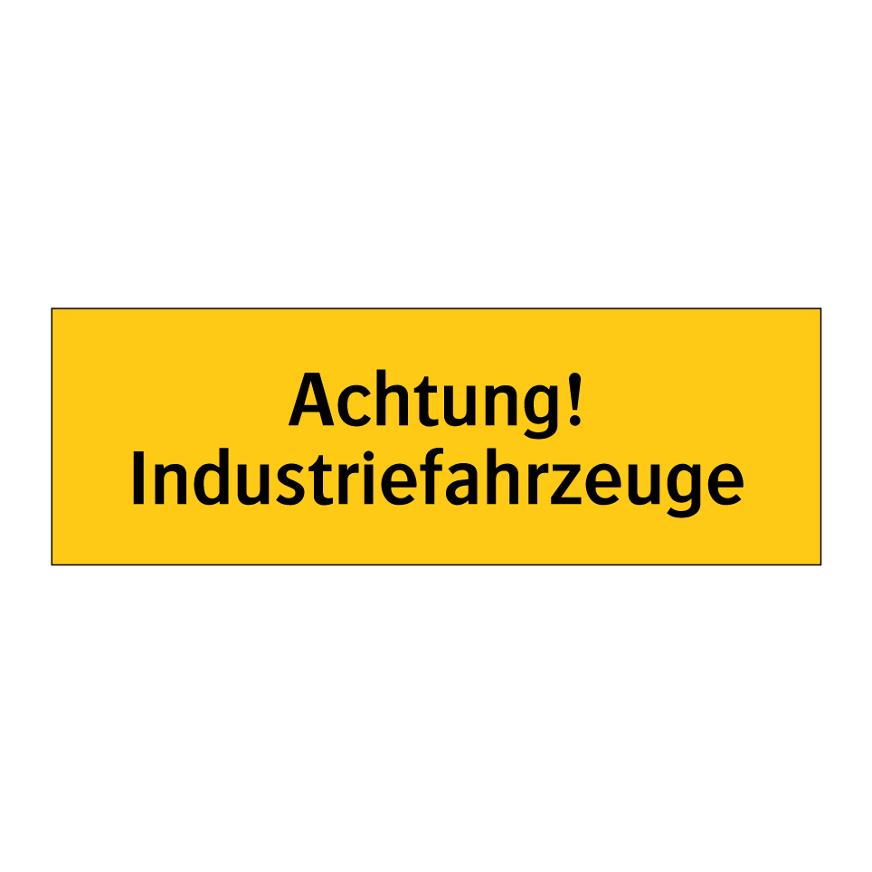 Warnschild mit dem Text Achtung! Industriefahrzeuge