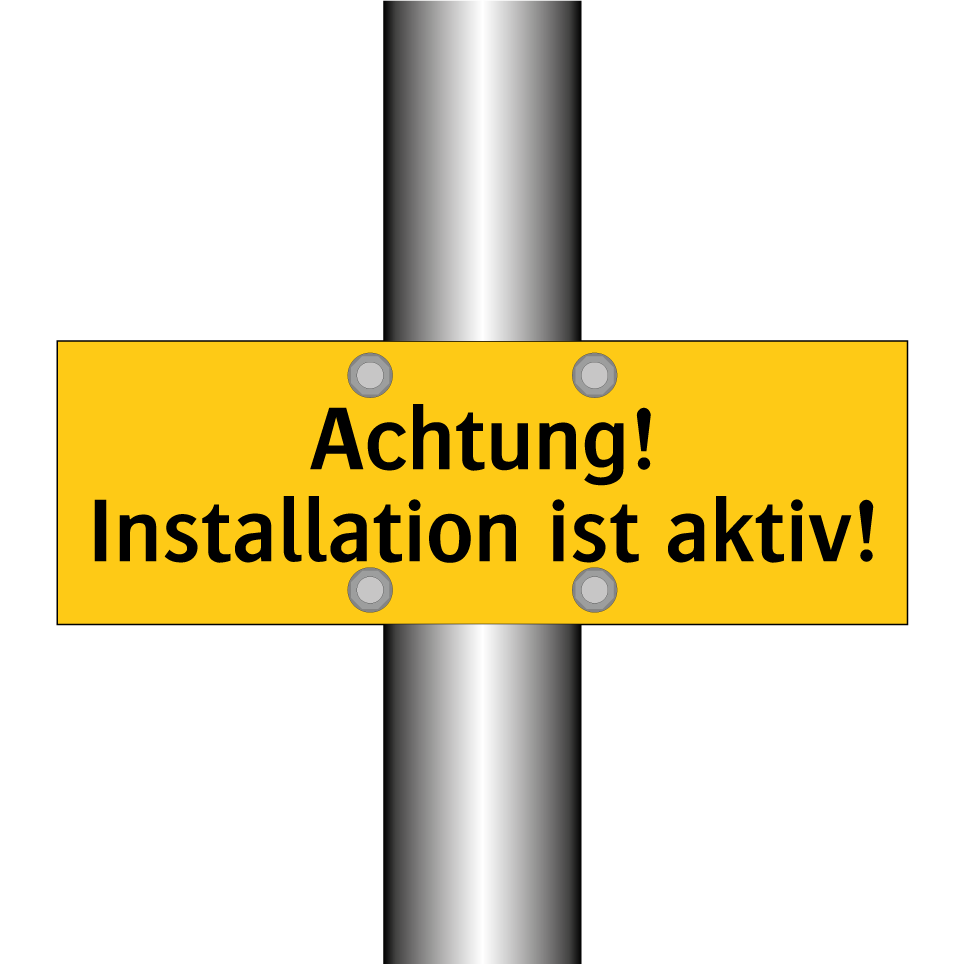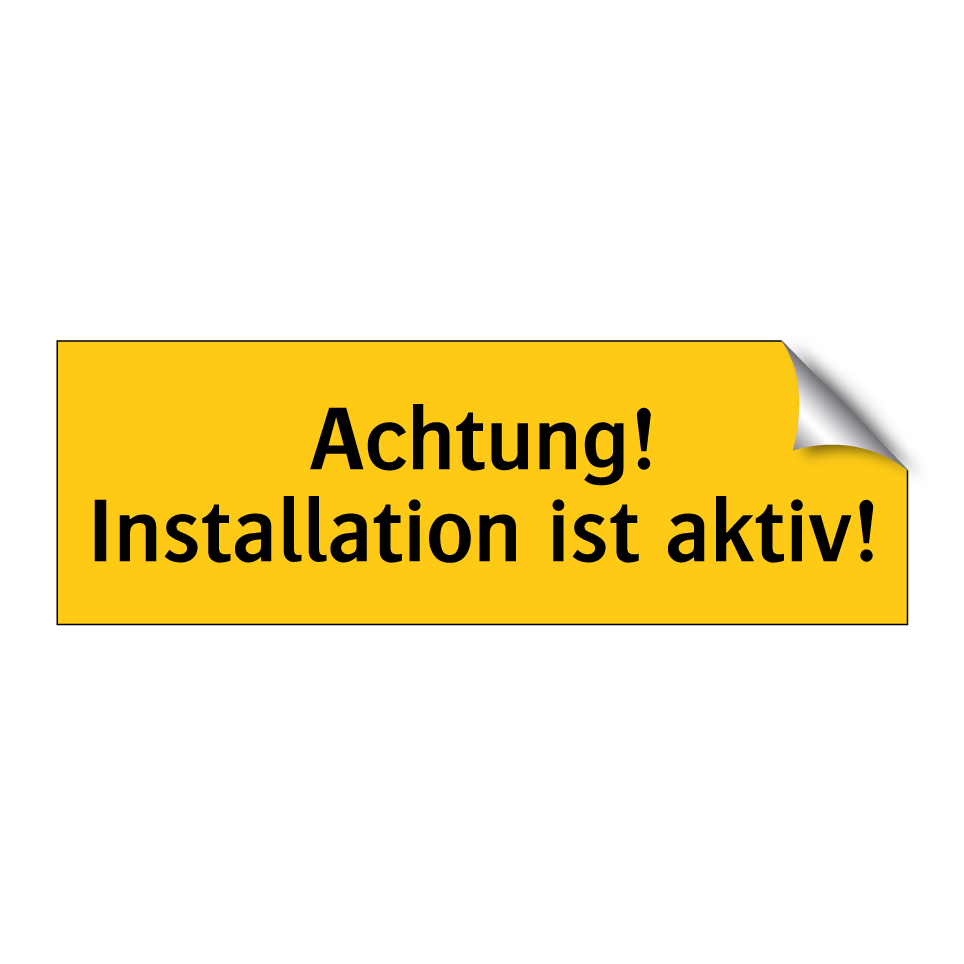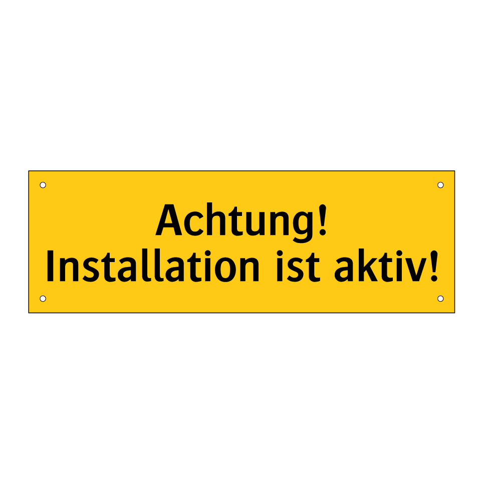 Warnschild mit dem Text Achtung! Installation ist aktiv!