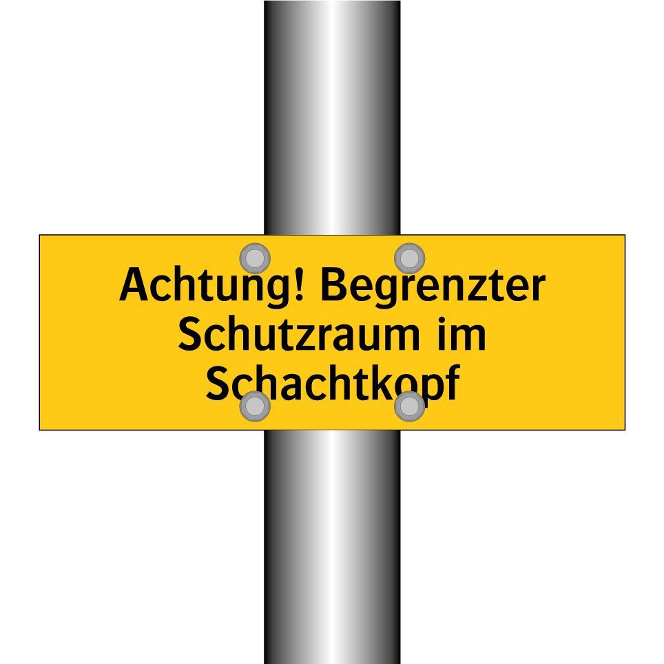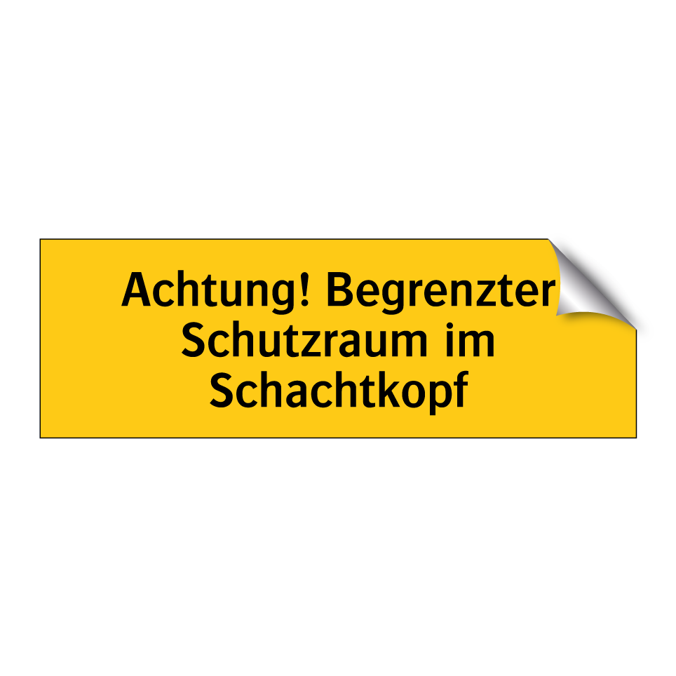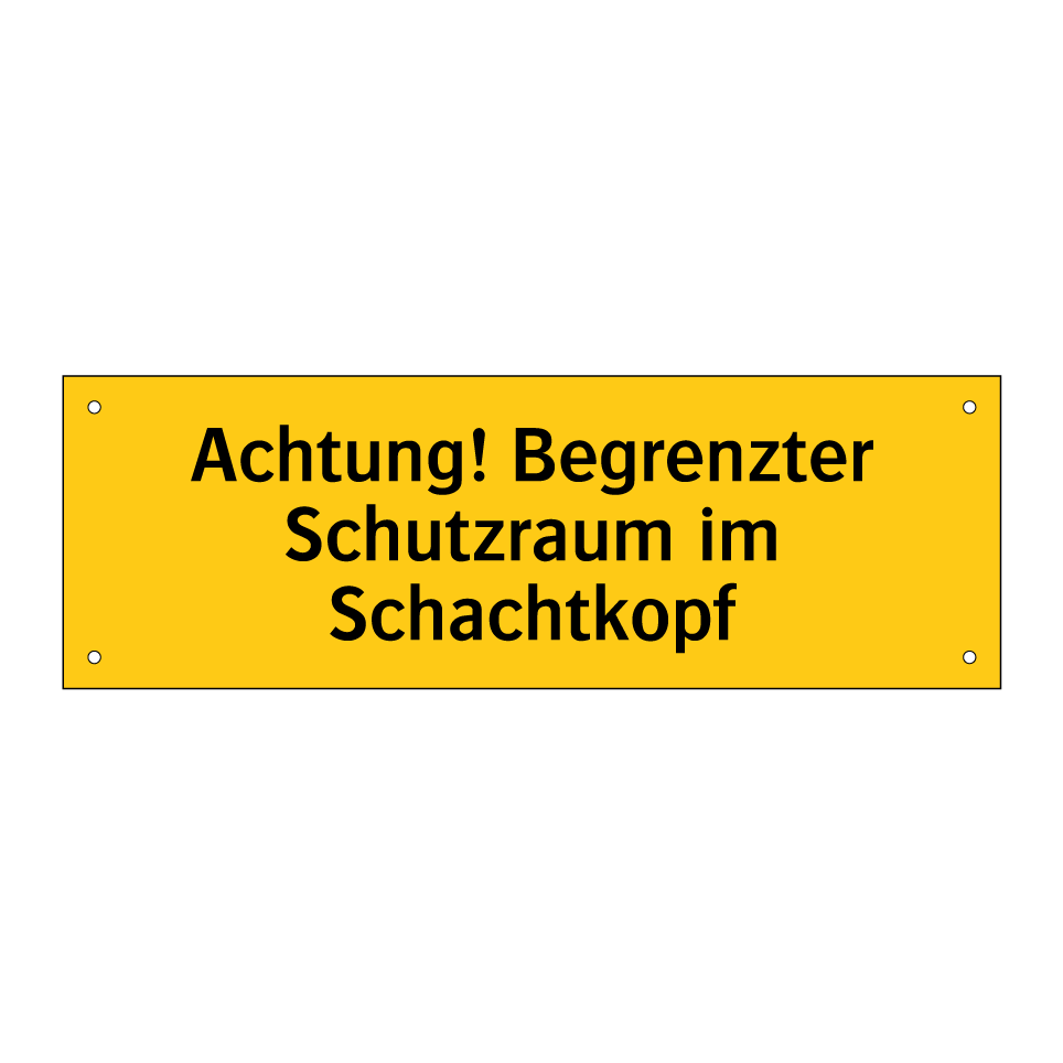Warnschild mit dem Text Achtung! Begrenzter Schutzraum im Schachtkopf