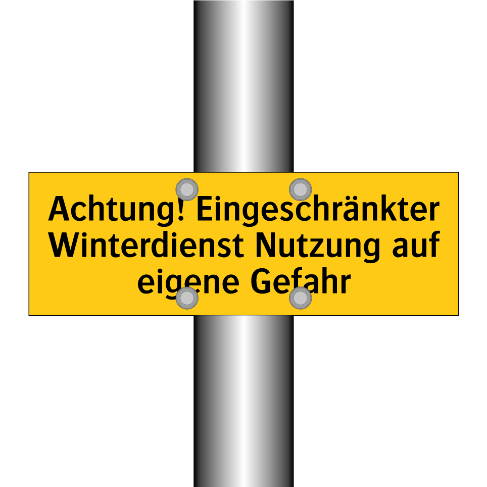 Warnschild mit dem Text Achtung! Eingeschränkter Winterdienst Nutzung auf eigene Gefahr
