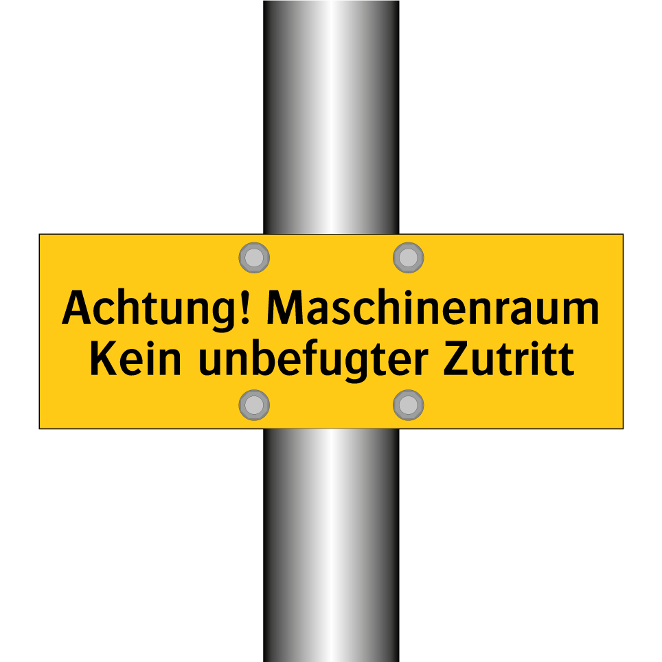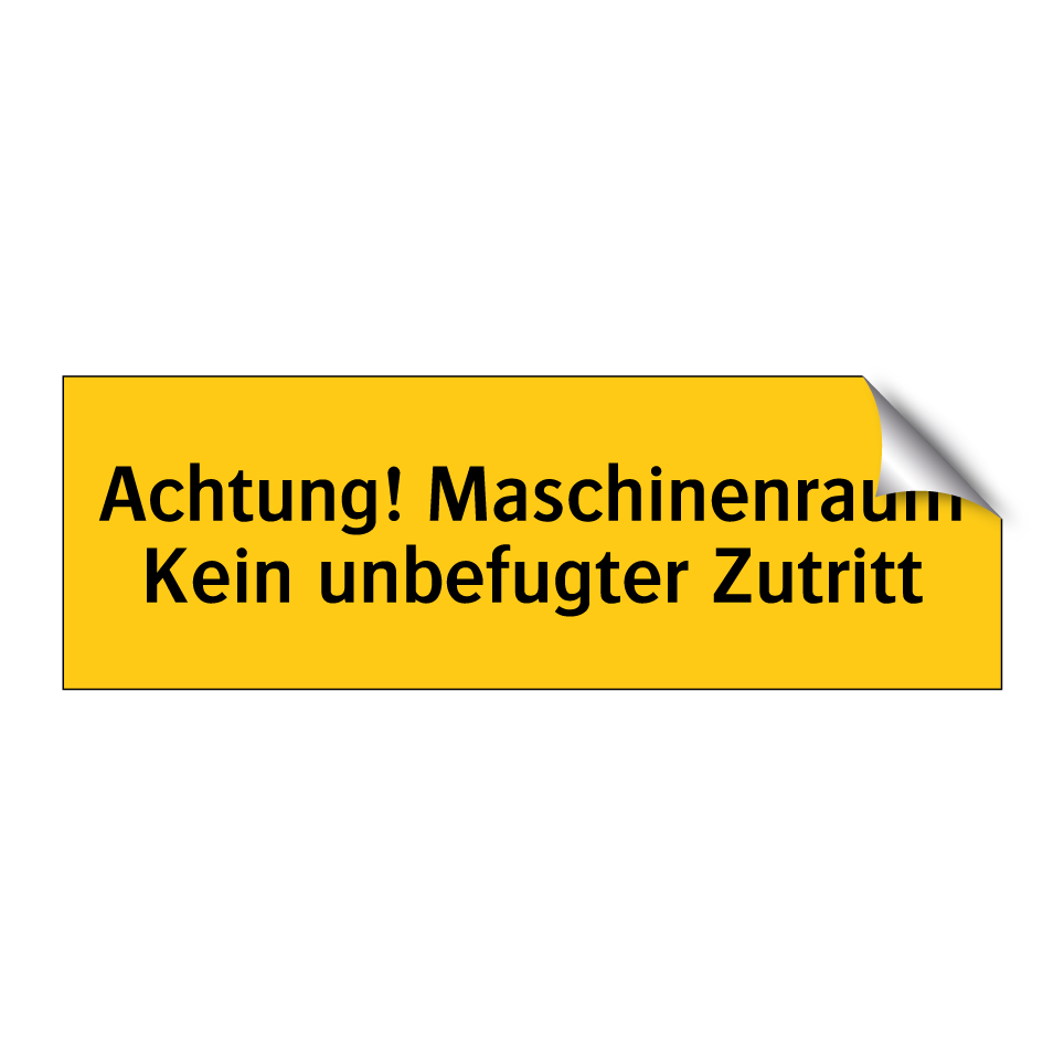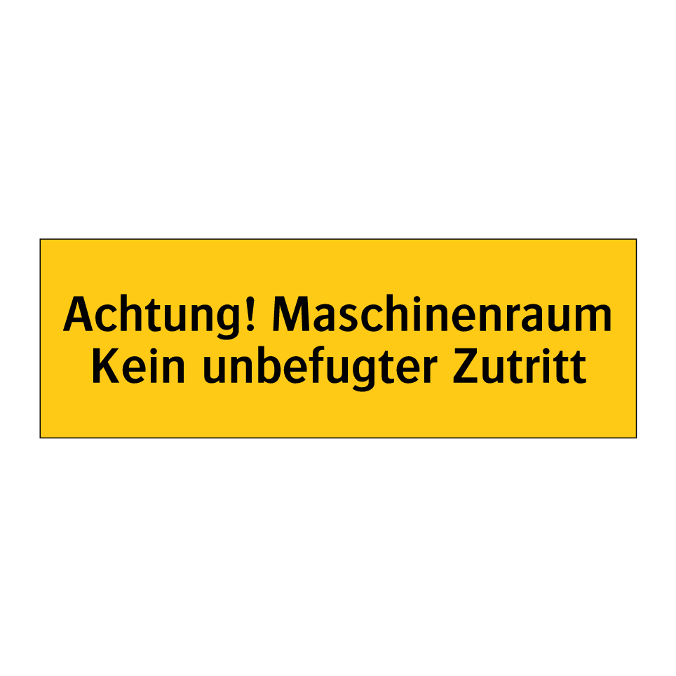 Warnschild mit dem Text Achtung! Maschinenraum Kein unbefugter Zutritt