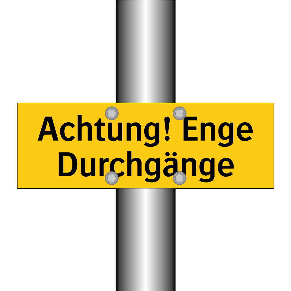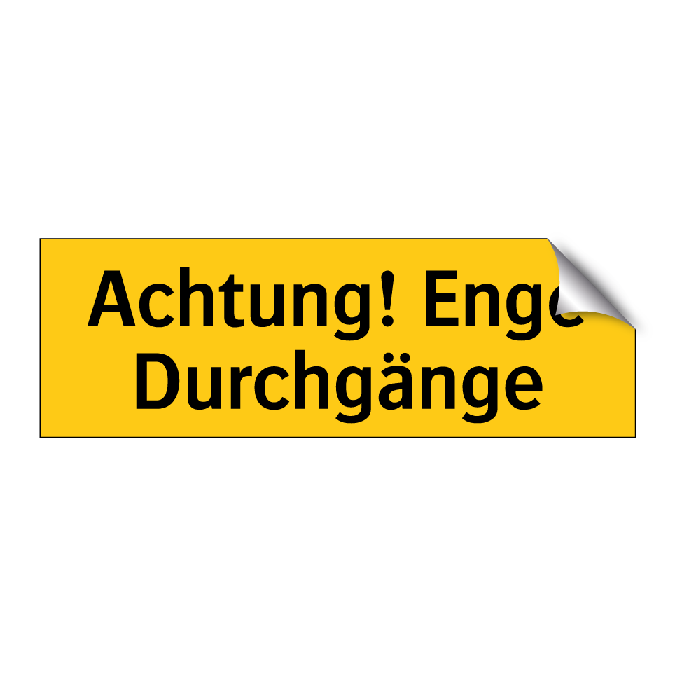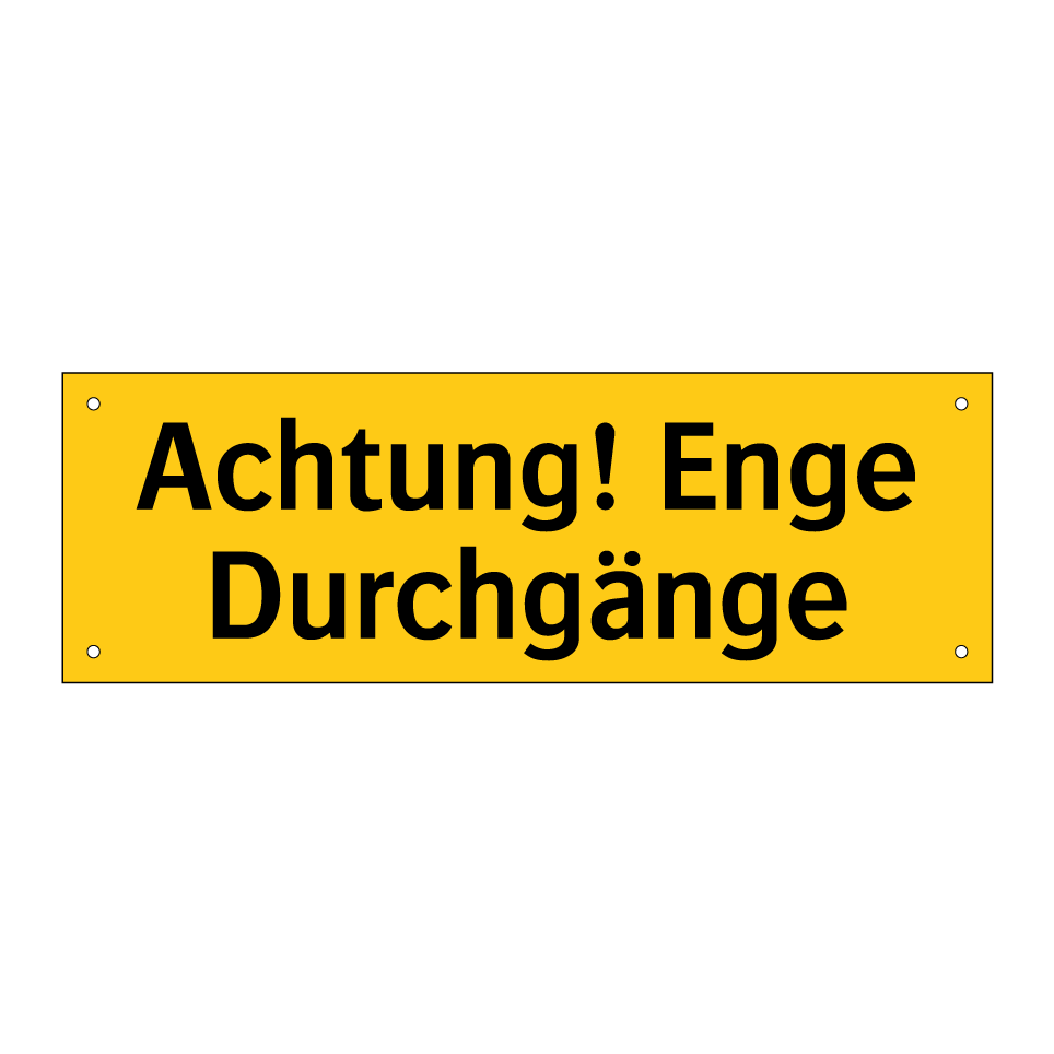 Warnschild mit dem Text Achtung! Enge Durchgänge