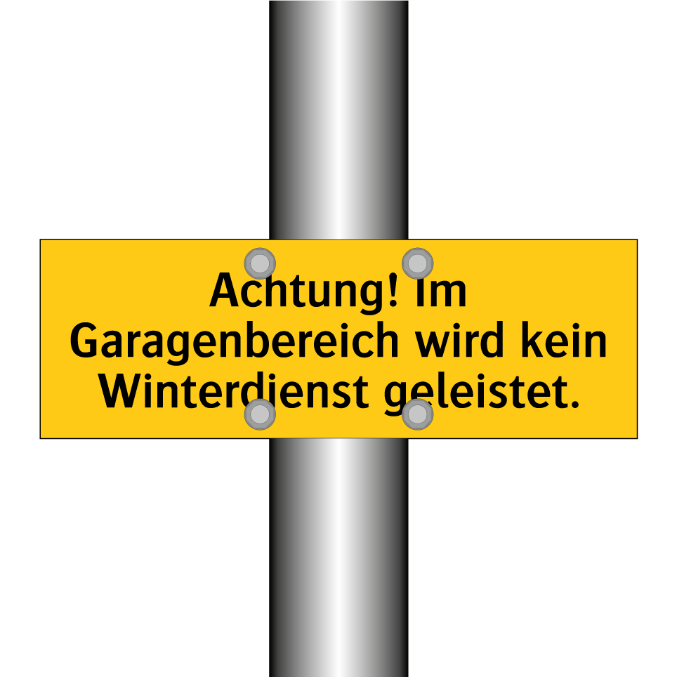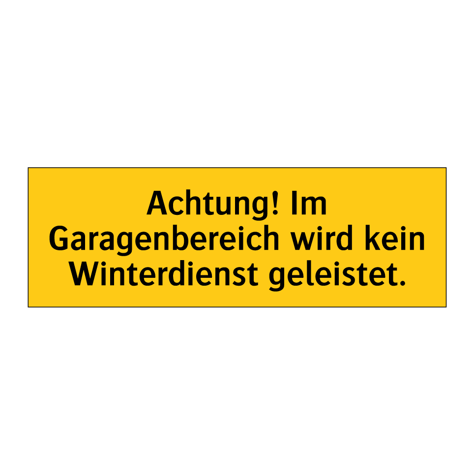 Warnschild mit dem Text Achtung! Im Garagenbereich wird kein Winterdienst geleistet.