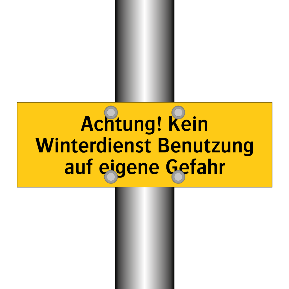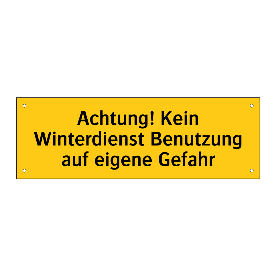 Warnschild mit dem Text Achtung! Kein Winterdienst Benutzung auf eigene Gefahr