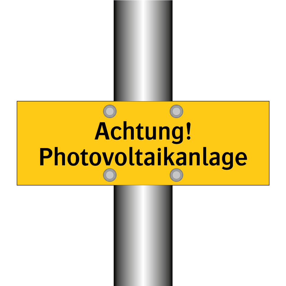 Warnschild mit dem Text Achtung! Photovoltaikanlage