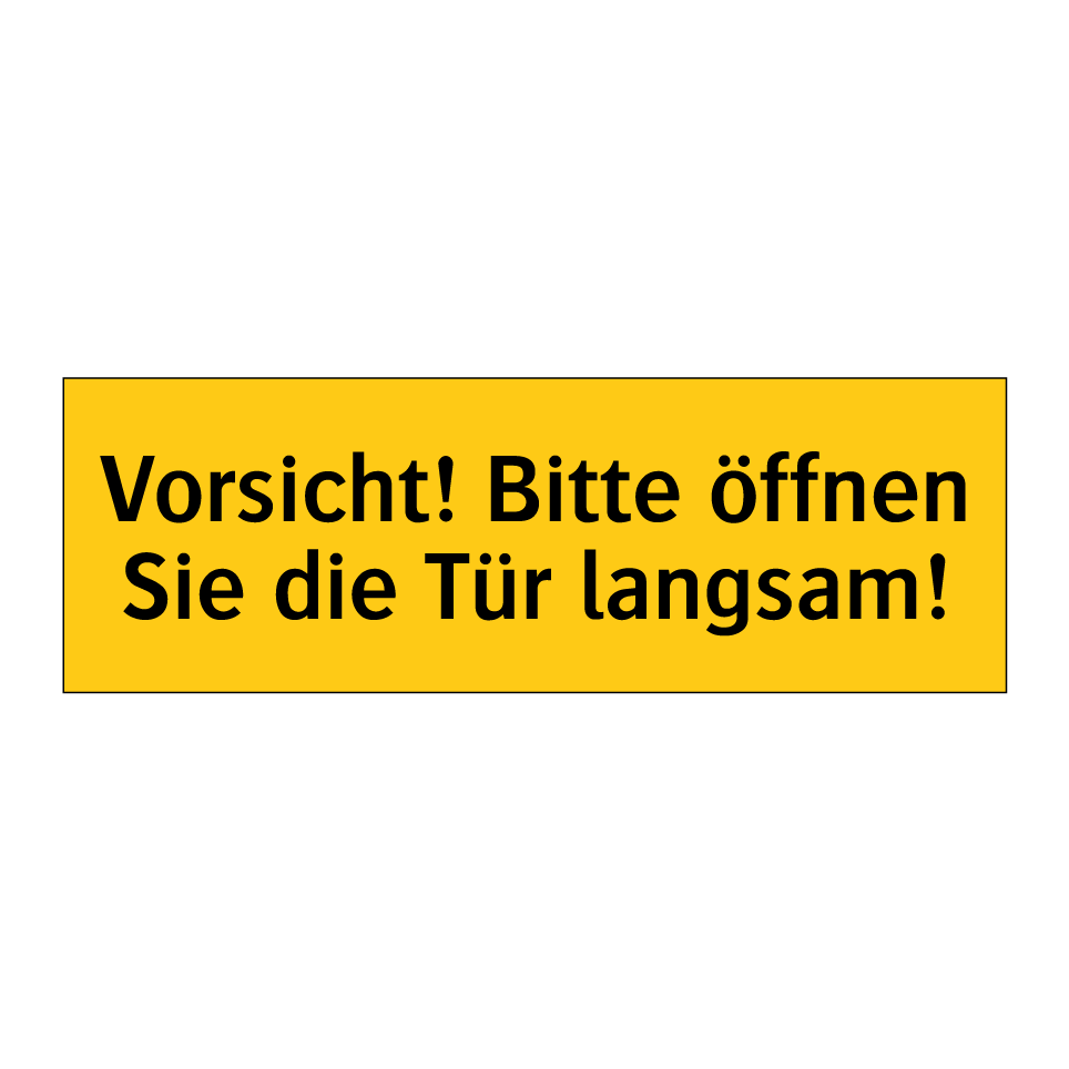 Warnschild mit dem Text Vorsicht! Bitte öffnen Sie die Tür langsam!