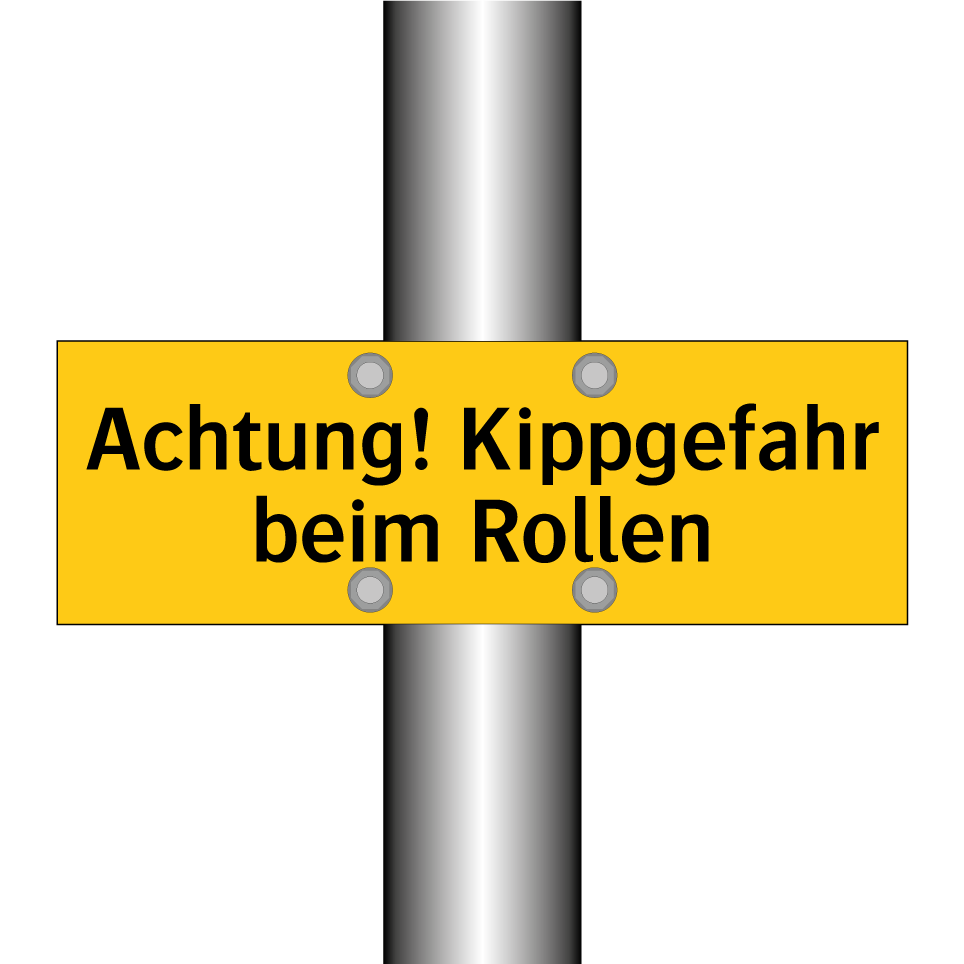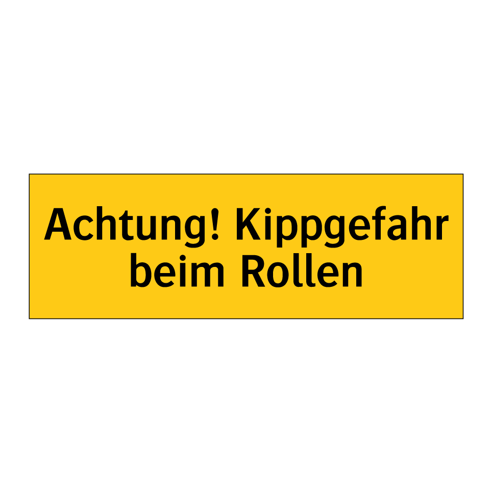 Warnschild mit dem Text Achtung! Kippgefahr beim Rollen