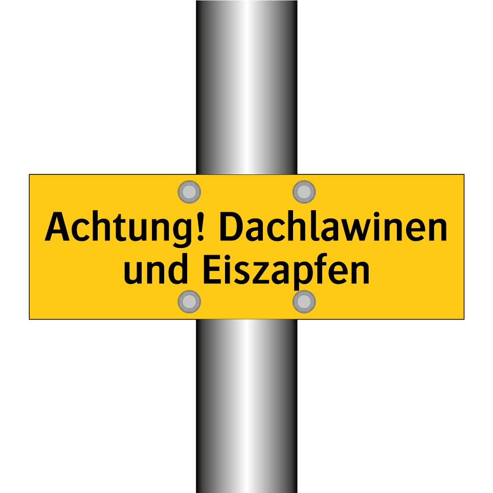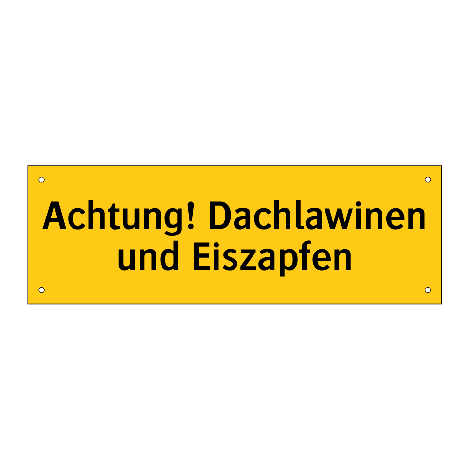 Warnschild mit dem Text Achtung! Dachlawinen und Eiszapfen