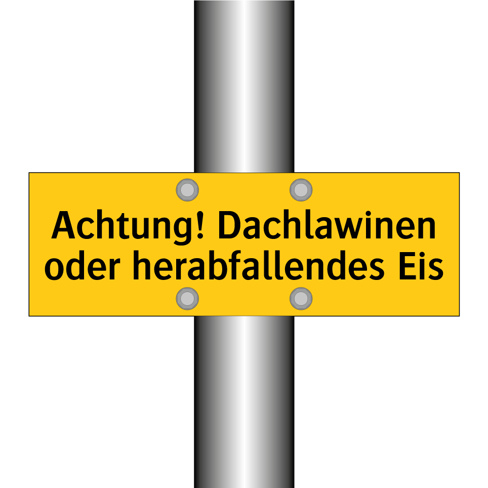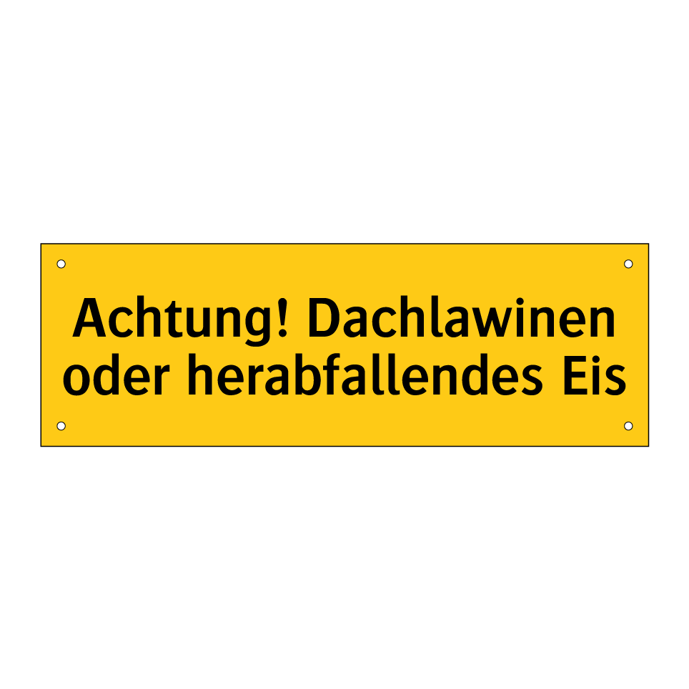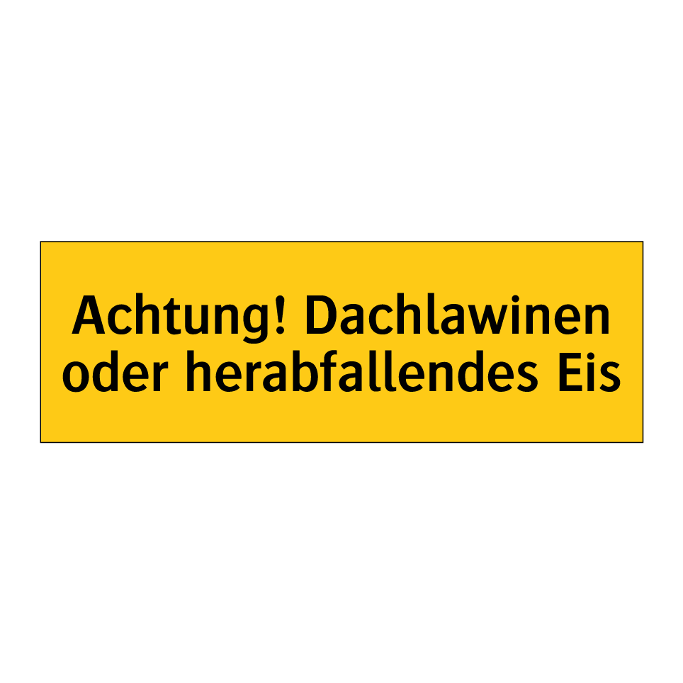 Warnschild mit dem Text Achtung! Dachlawinen oder herabfallendes Eis
