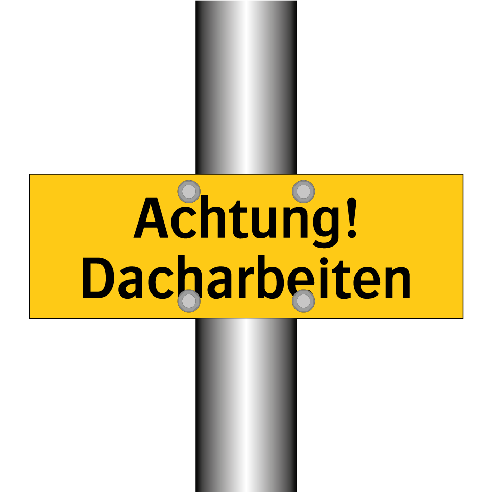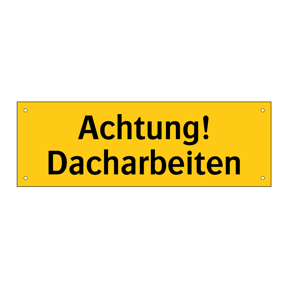 Warnschild mit dem Text Achtung! Dacharbeiten