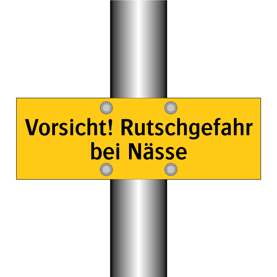 Warnschild mit dem Text Vorsicht! Rutschgefahr bei Nässe