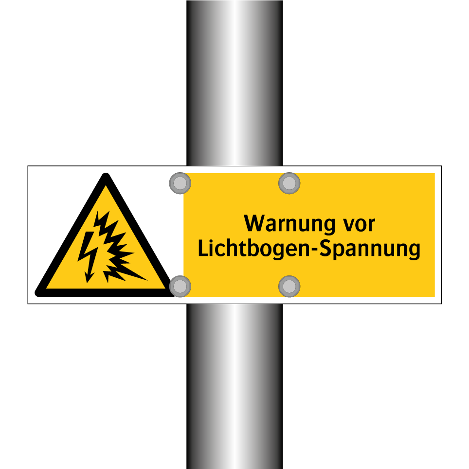 Warnschild mit dem Text Warnung vor Lichtbogen-Spannung