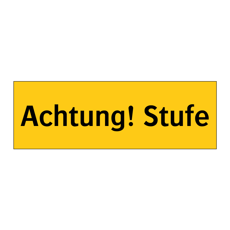 Warnschild mit dem Text Achtung! Stufe