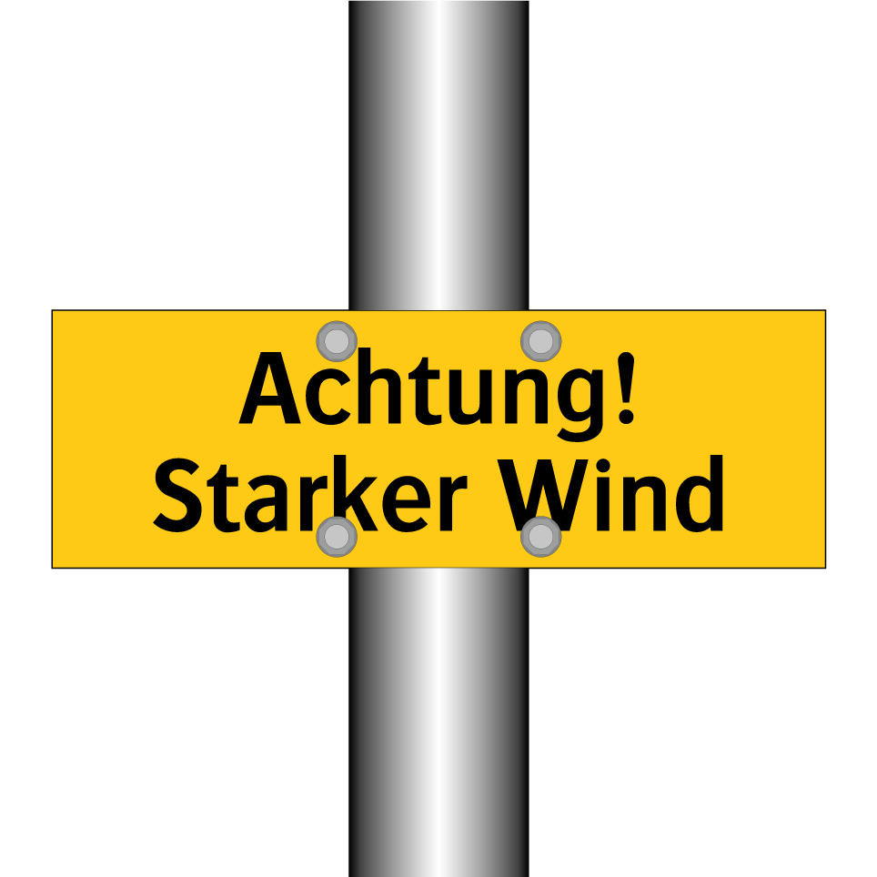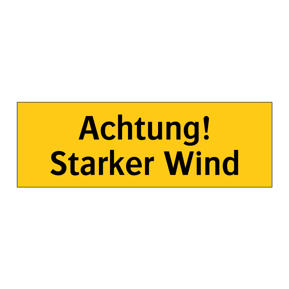 Warnschild mit dem Text Achtung! Starker Wind