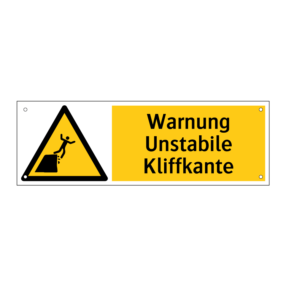 Warnschild mit dem Text Warnung Unstabile Kliffkante
