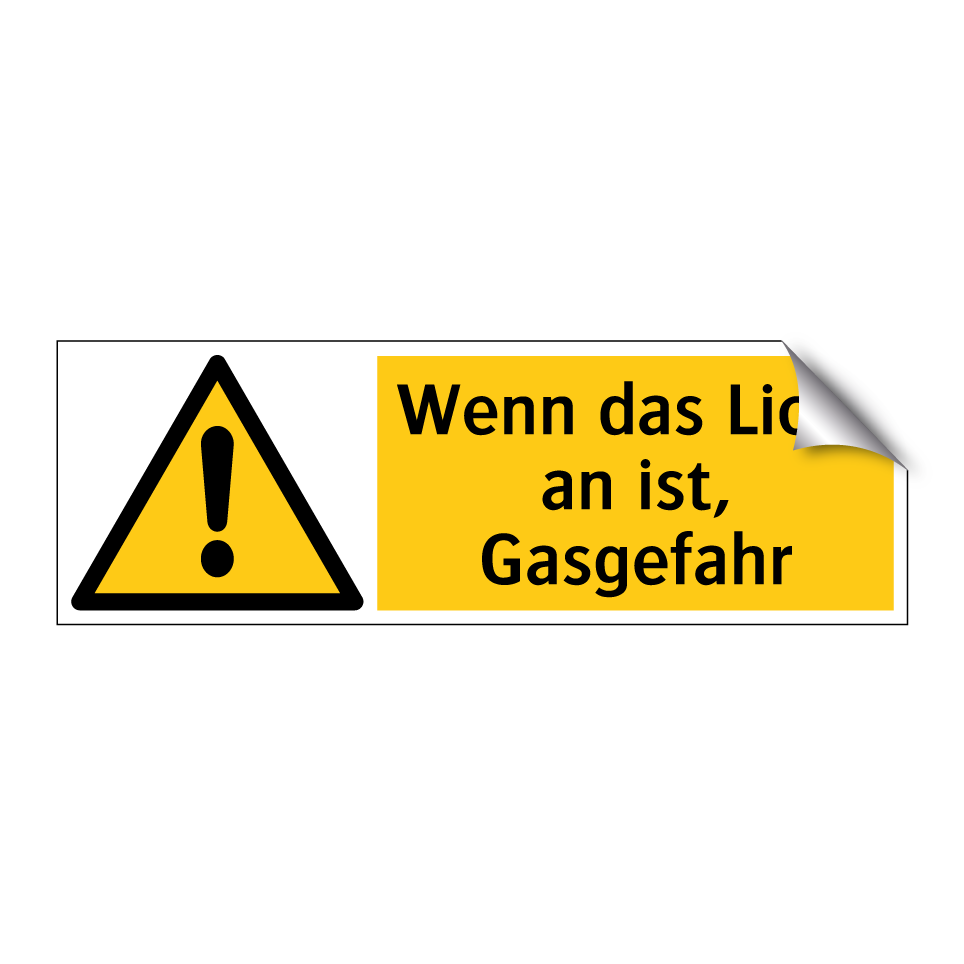 Warnschild mit dem Text Wenn das Licht an ist, Gasgefahr