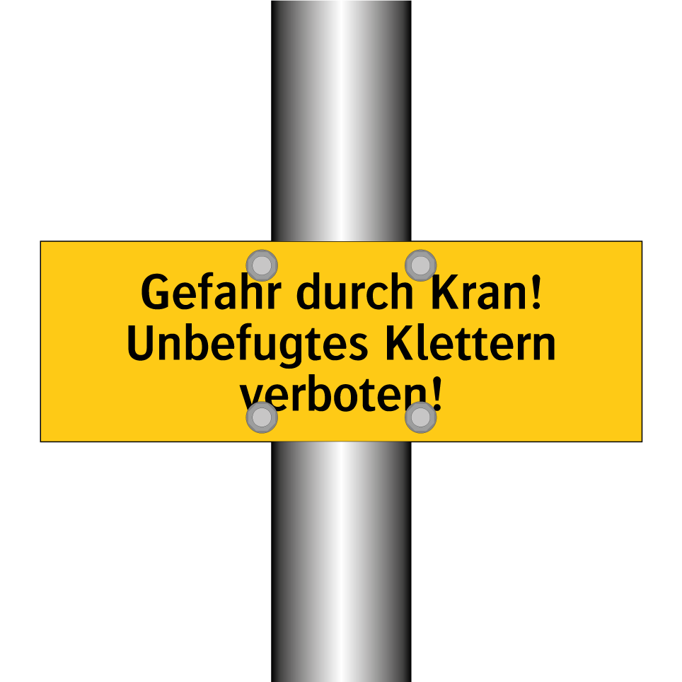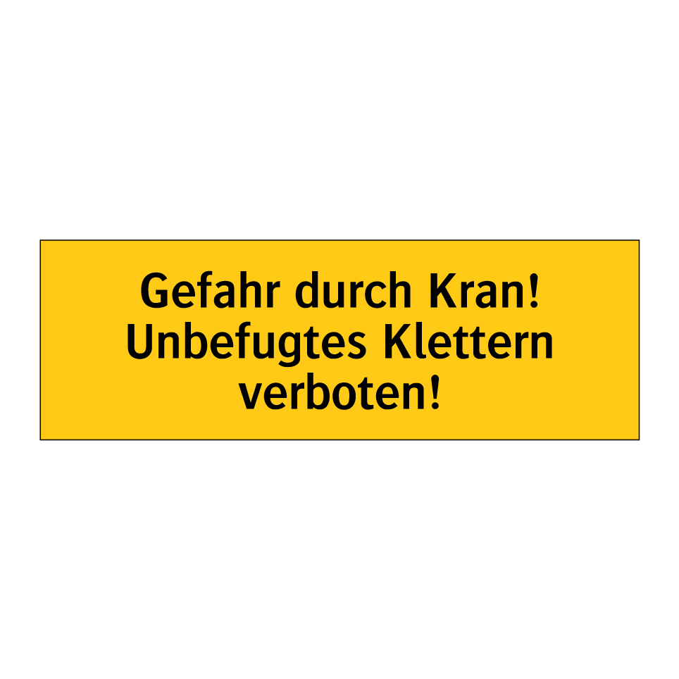 Warnschild mit dem Text Gefahr durch Kran! Unbefugtes Klettern verboten!