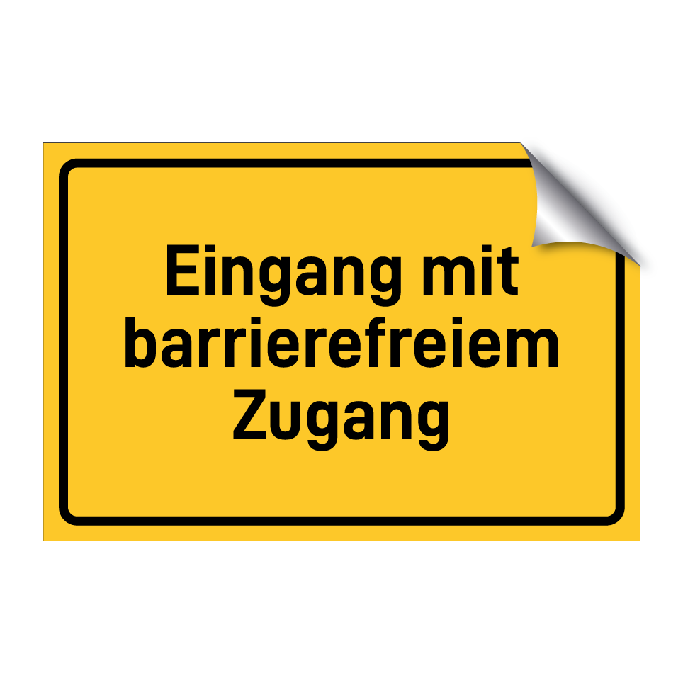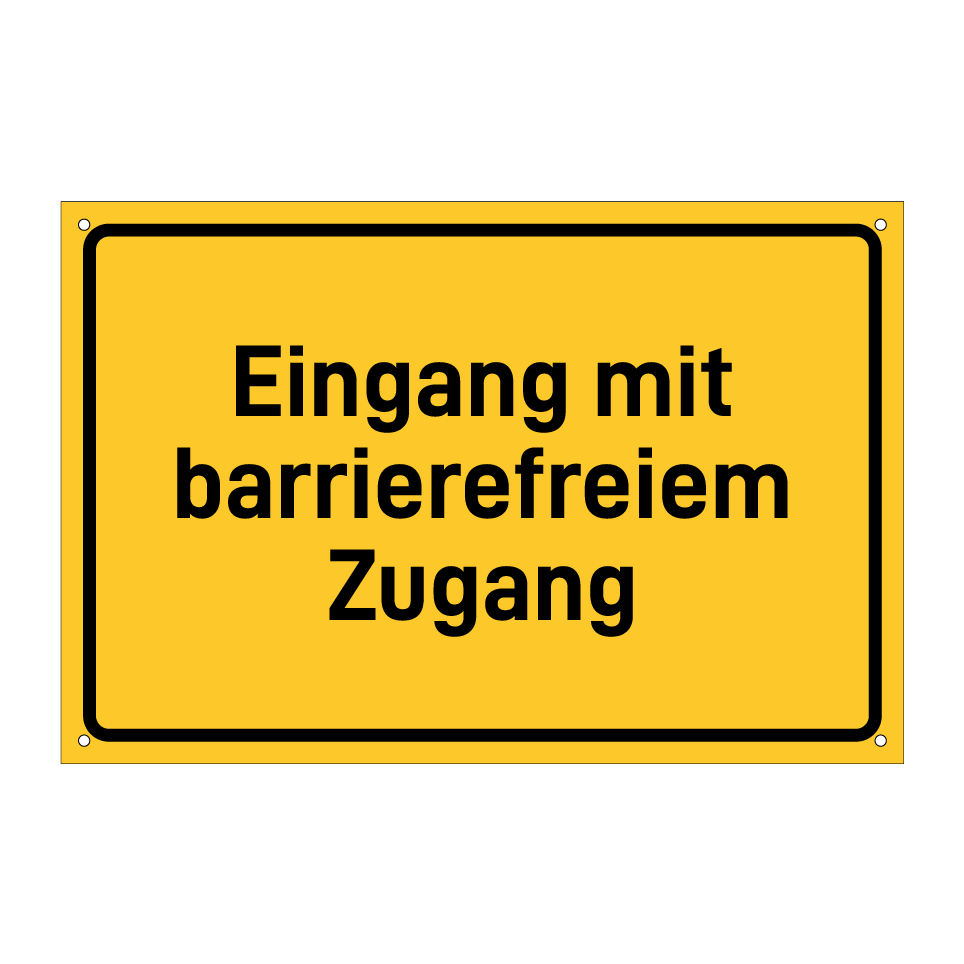 Hinweisschild mit dem Text Eingang mit barrierefreiem Zugang