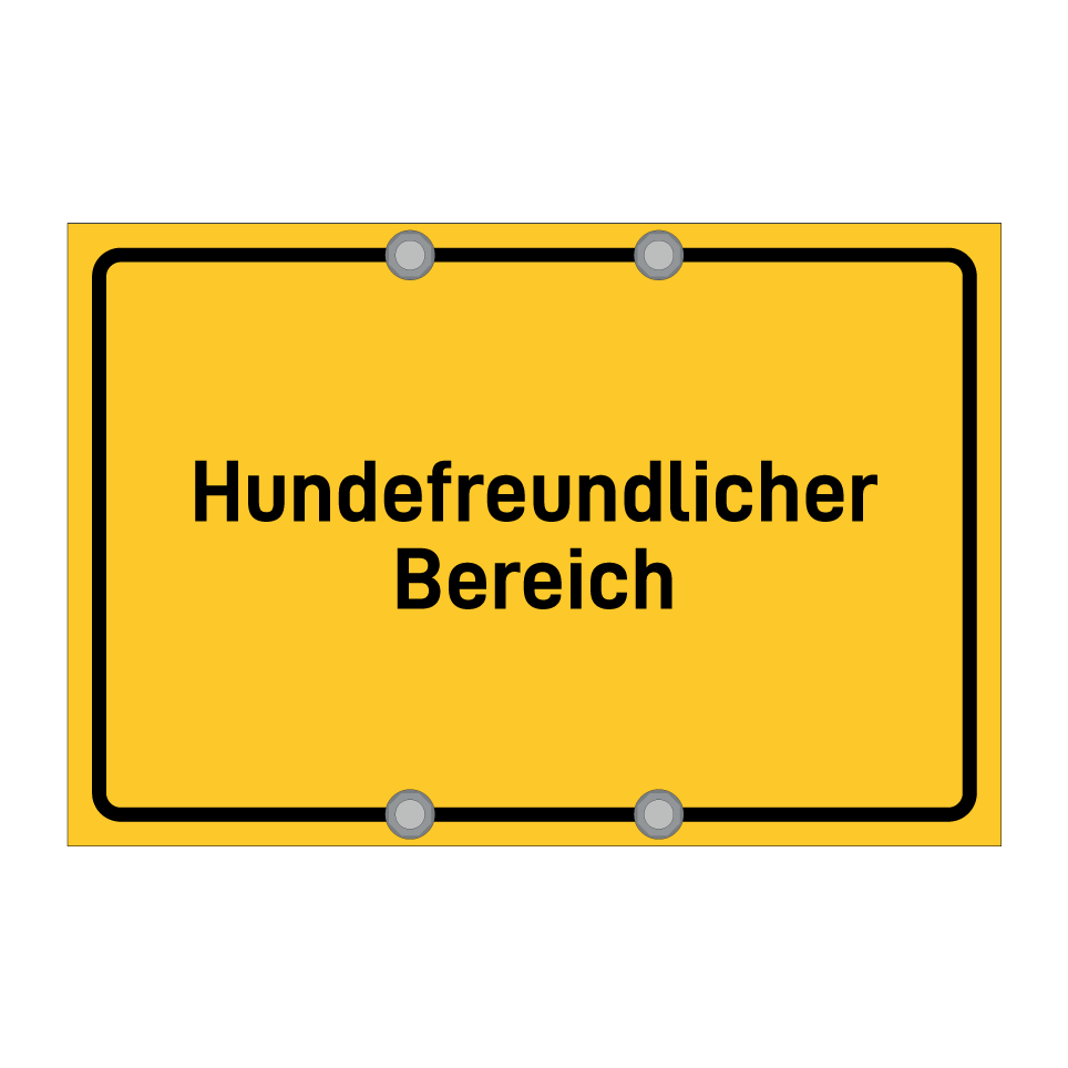 Hinweisschild mit dem Text Hundefreundlicher Bereich