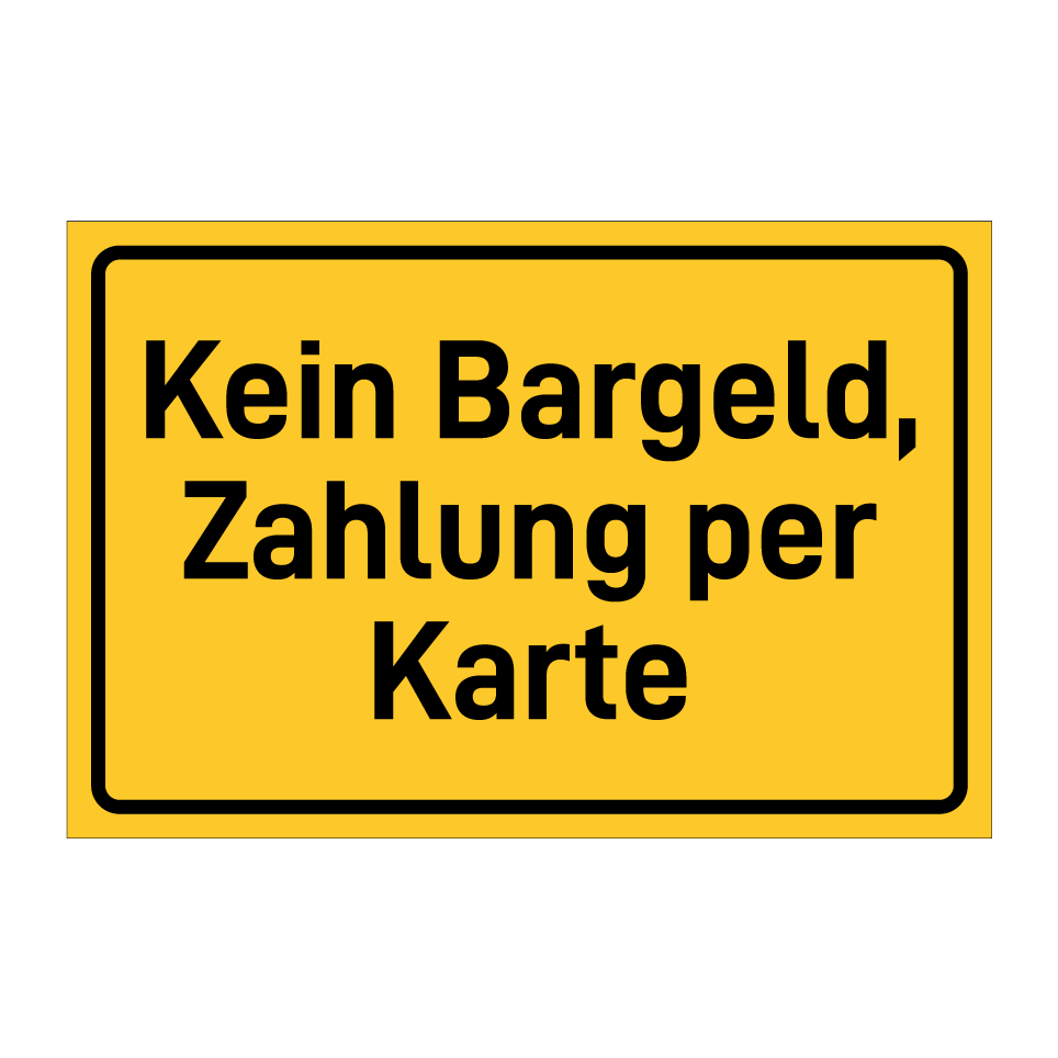 Hinweisschild mit dem Text Kein Bargeld, Zahlung per Karte