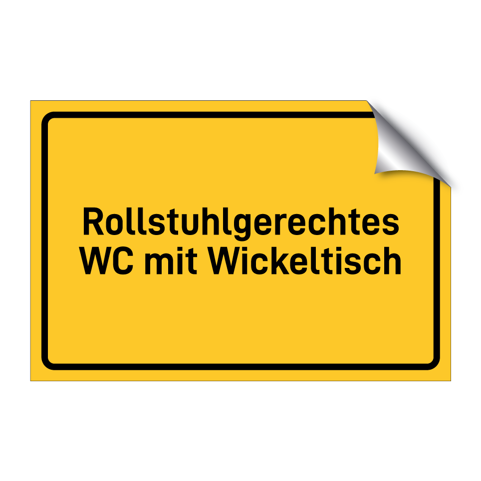Hinweisschild mit dem Text Rollstuhlgerechtes WC mit Wickeltisch