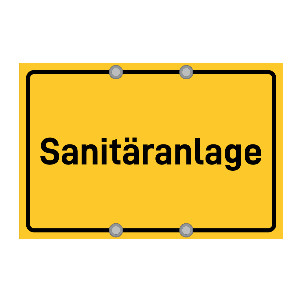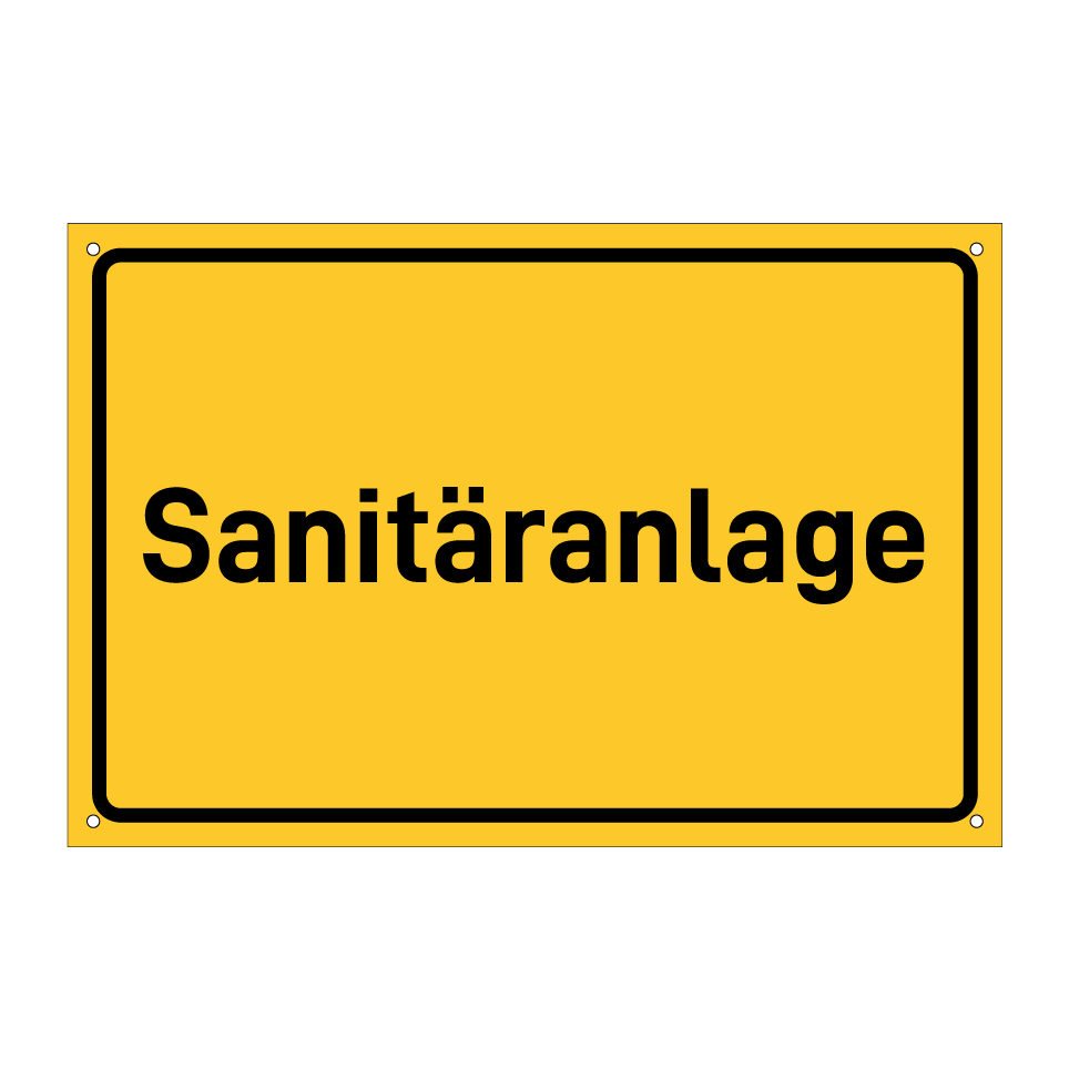 Hinweisschild mit dem Text Sanitäranlage