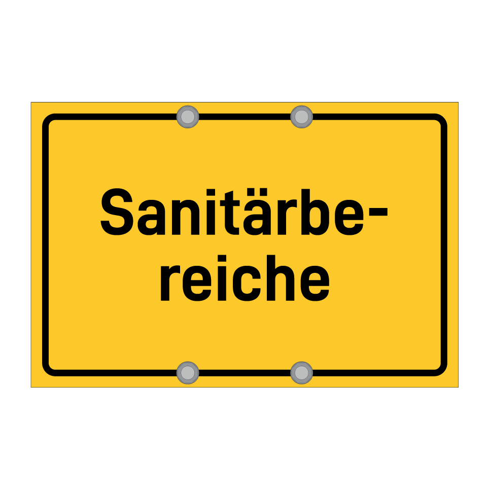 Hinweisschild mit dem Text Sanitärbe- reiche