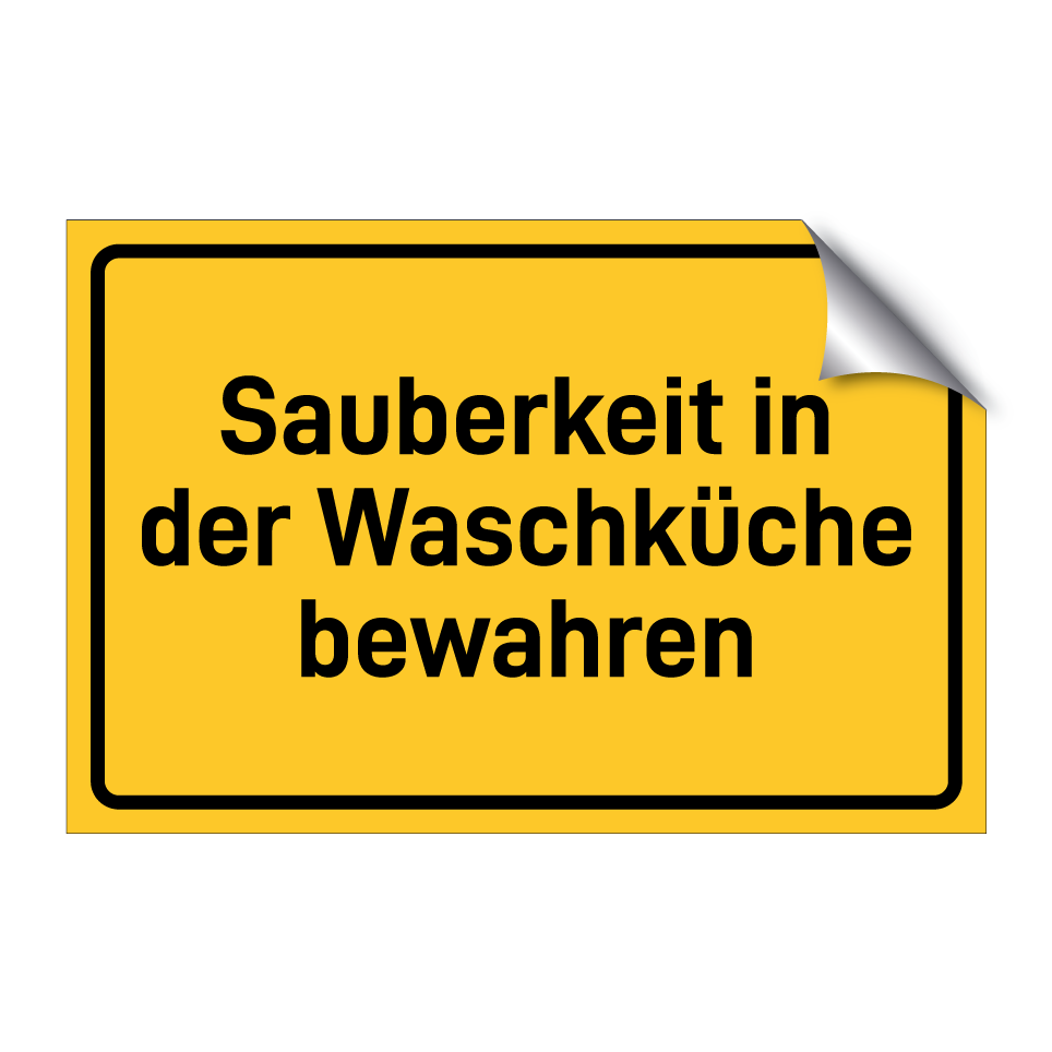 Hinweisschild mit dem Text Sauberkeit in der Waschküche bewahren