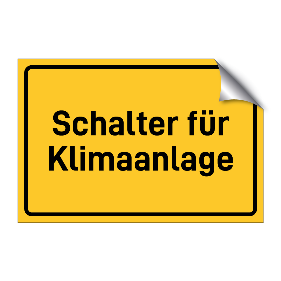 Hinweisschild mit dem Text Schalter für Klimaanlage