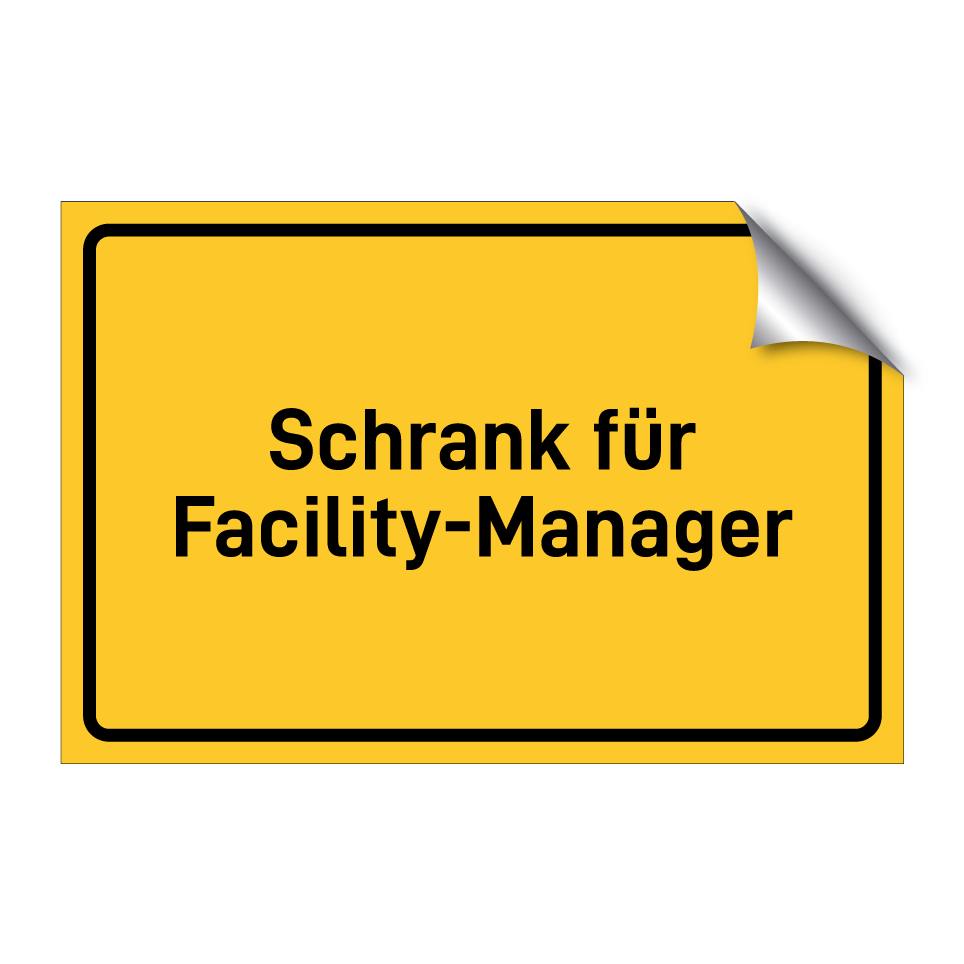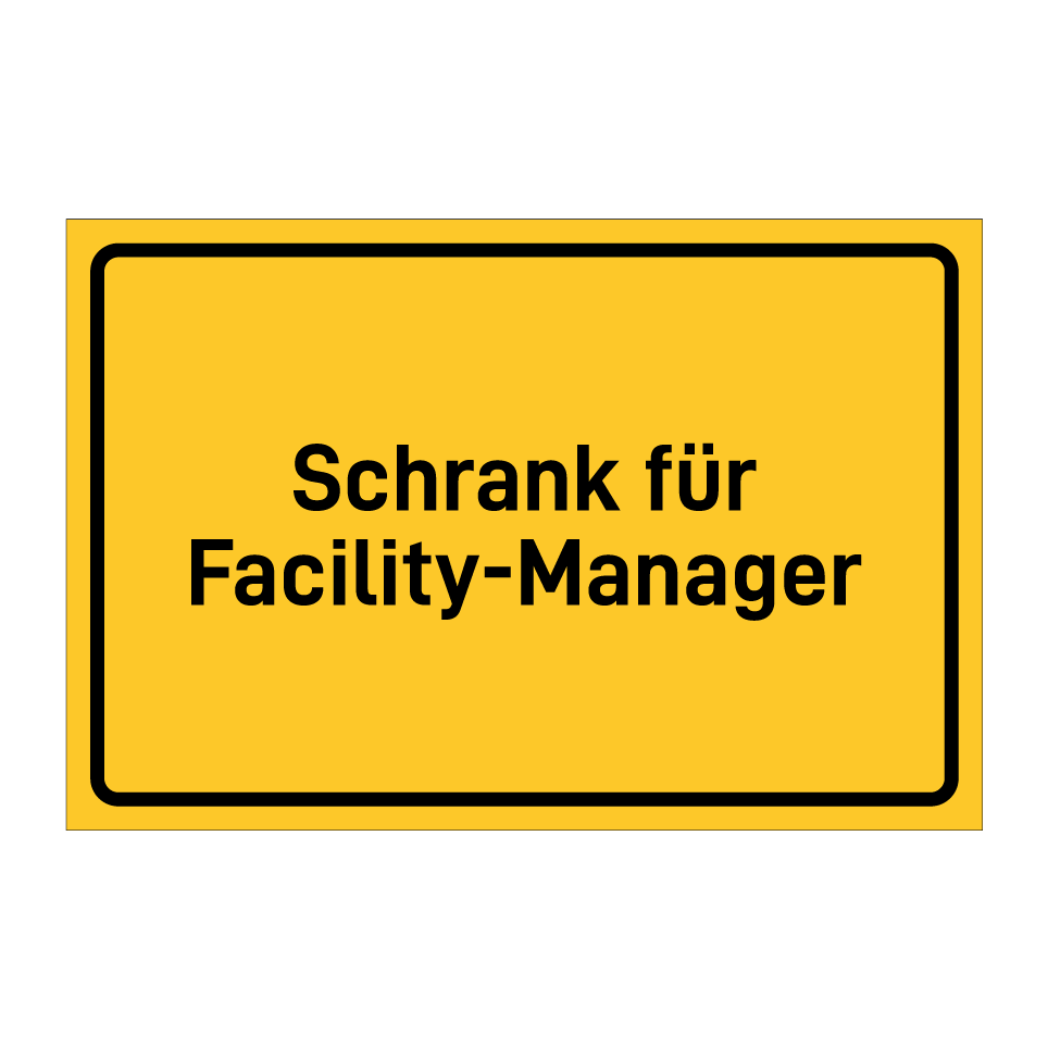 Hinweisschild mit dem Text Schrank für Facility-Manager