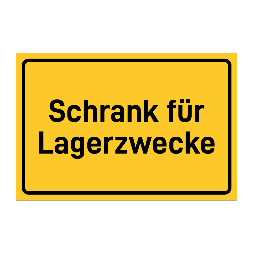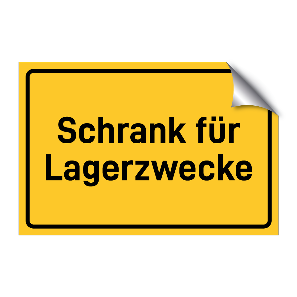 Hinweisschild mit dem Text Schrank für Lagerzwecke