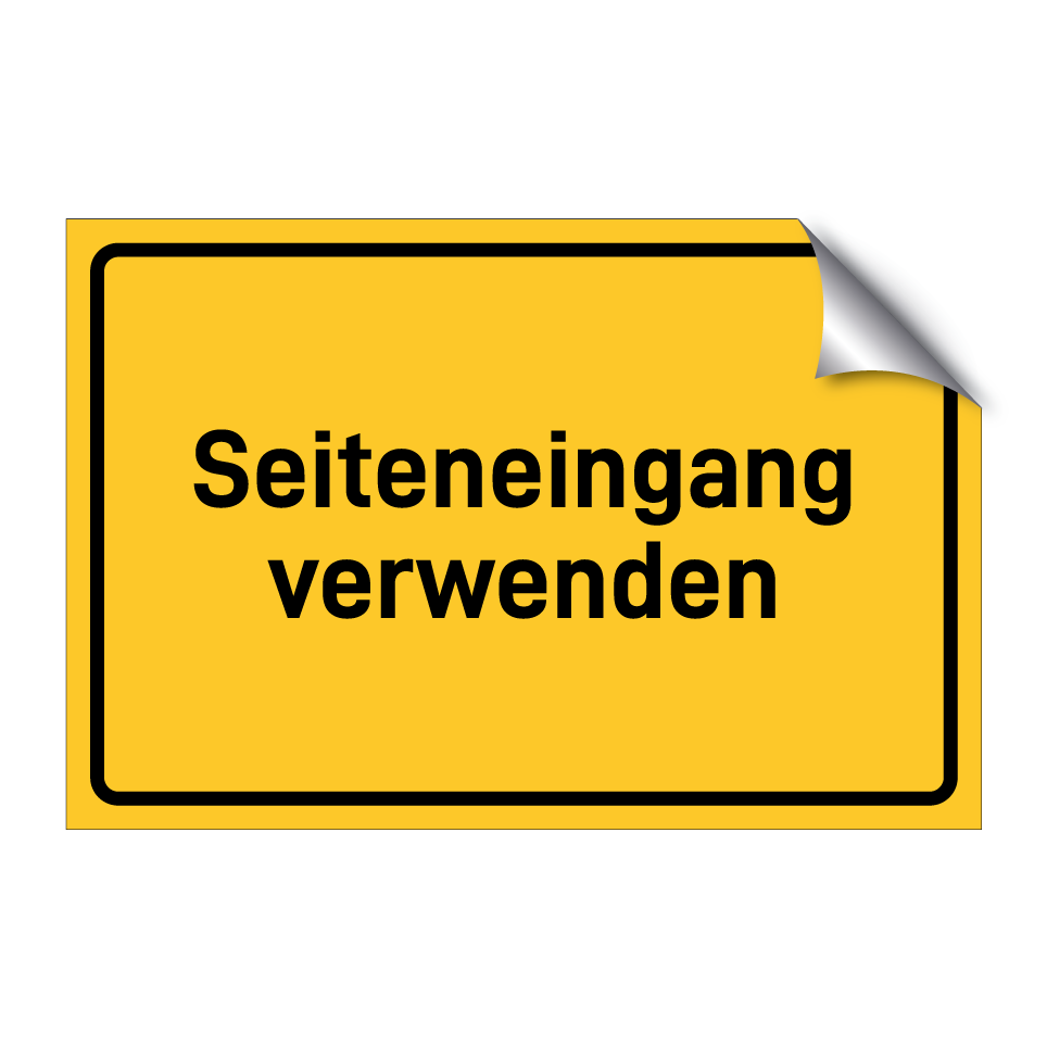 Hinweisschild mit dem Text Seiteneingang verwenden