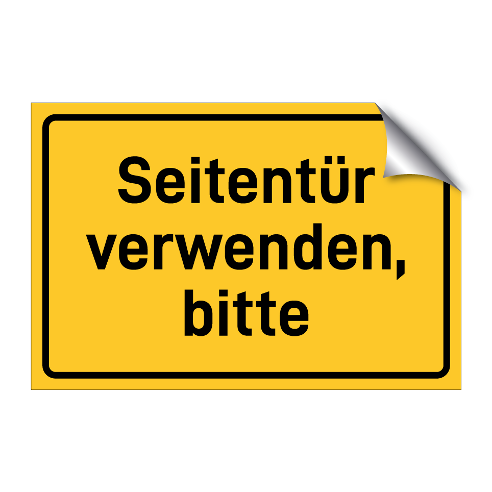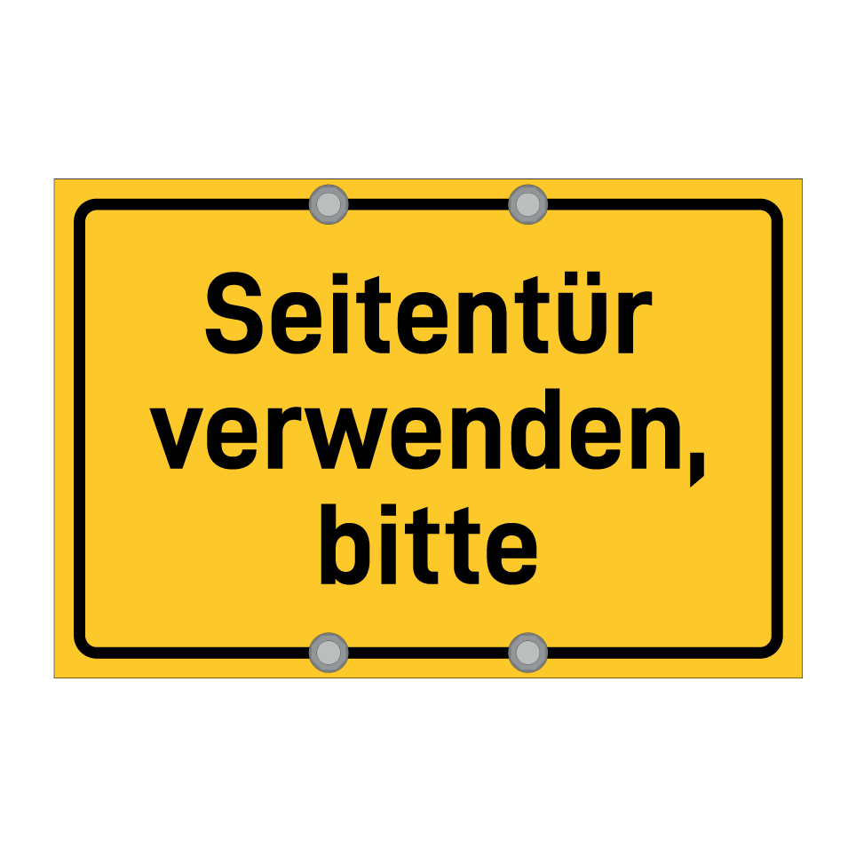 Hinweisschild mit dem Text Seitentür verwenden, bitte