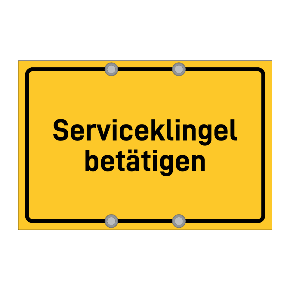 Hinweisschild mit dem Text Serviceklingel betätigen