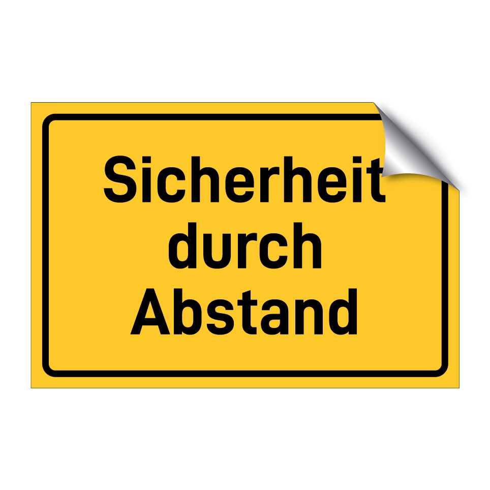 Hinweisschild mit dem Text Sicherheit durch Abstand