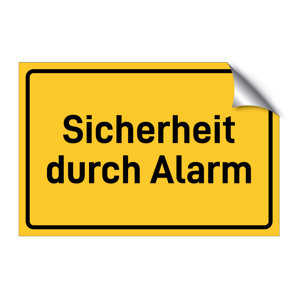 Hinweisschild mit dem Text Sicherheit durch Alarm