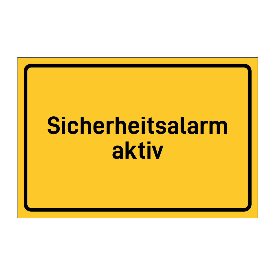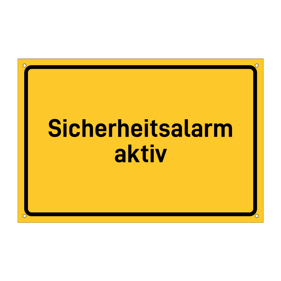 Hinweisschild mit dem Text Sicherheitsalarm aktiv