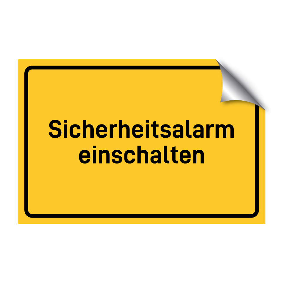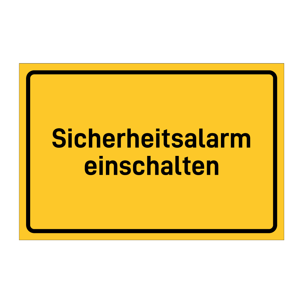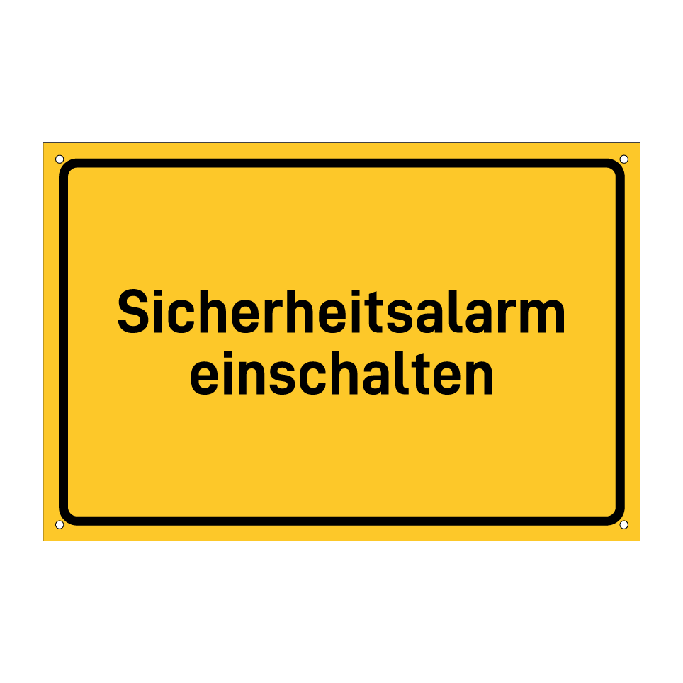 Hinweisschild mit dem Text Sicherheitsalarm einschalten