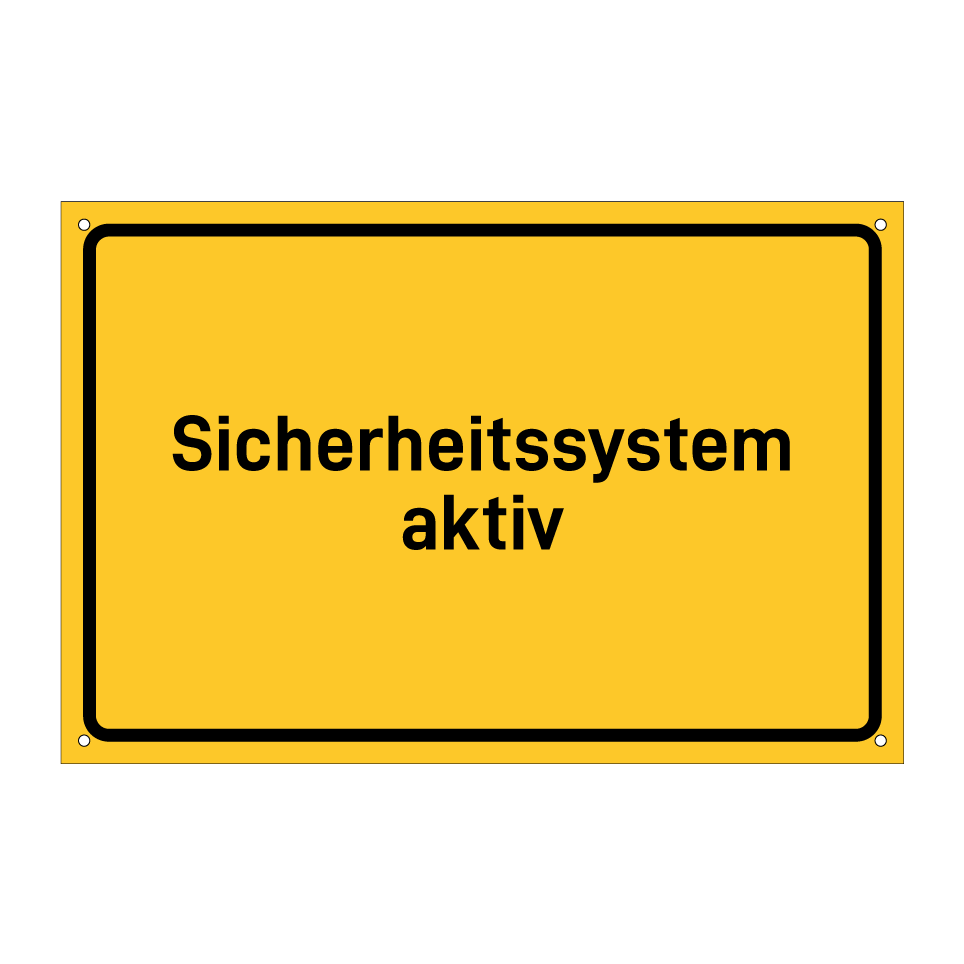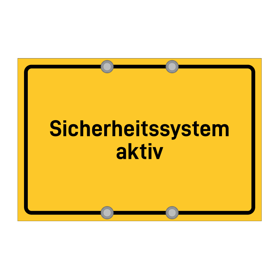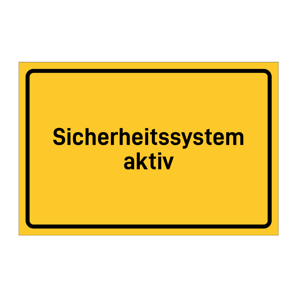 Hinweisschild mit dem Text Sicherheitssystem aktiv