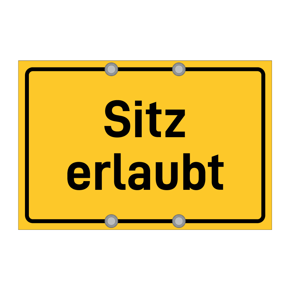 Hinweisschild mit dem Text Sitz erlaubt