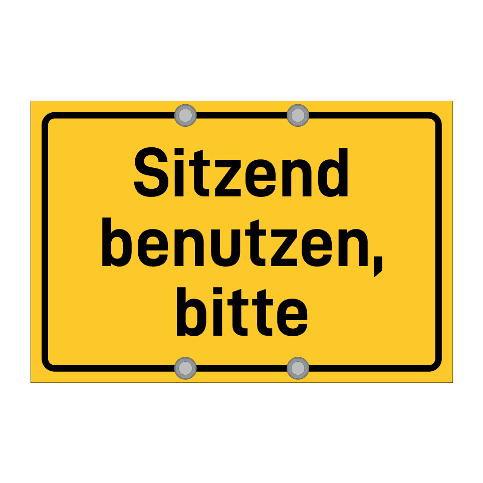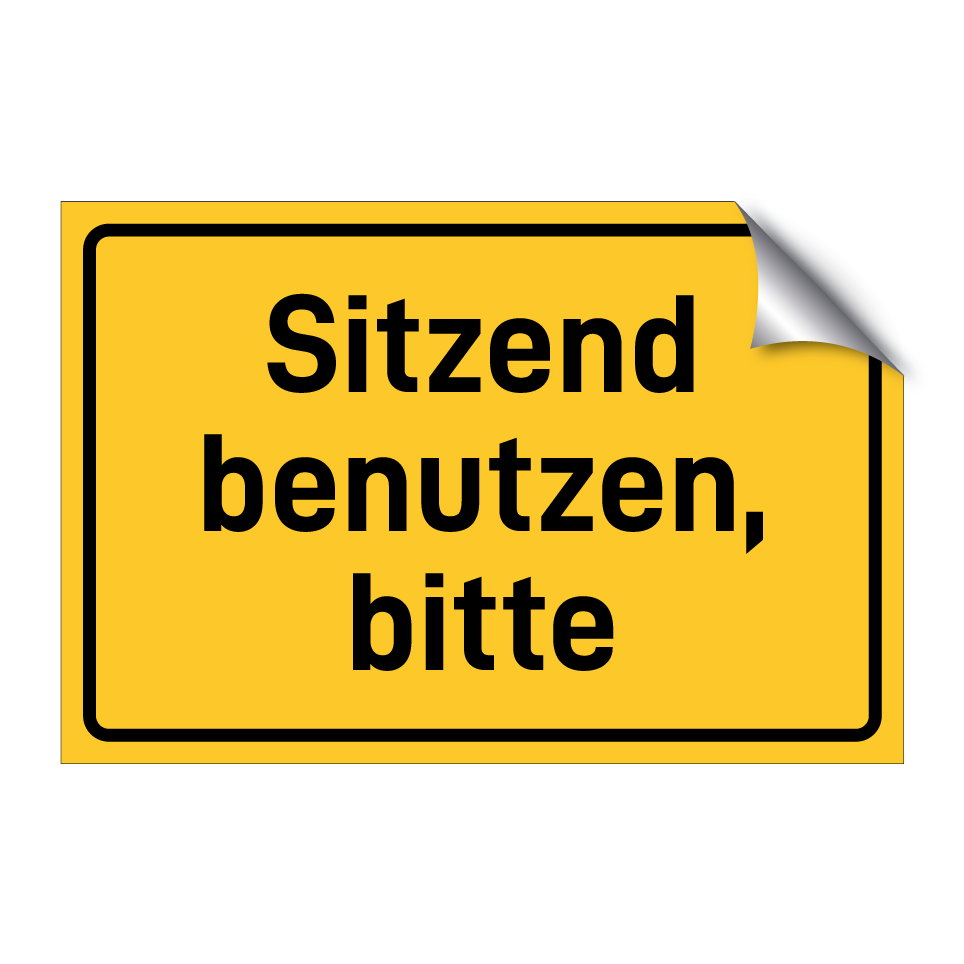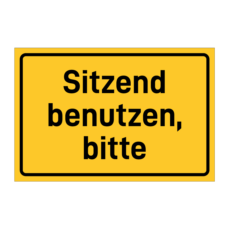 Hinweisschild mit dem Text Sitzend benutzen, bitte
