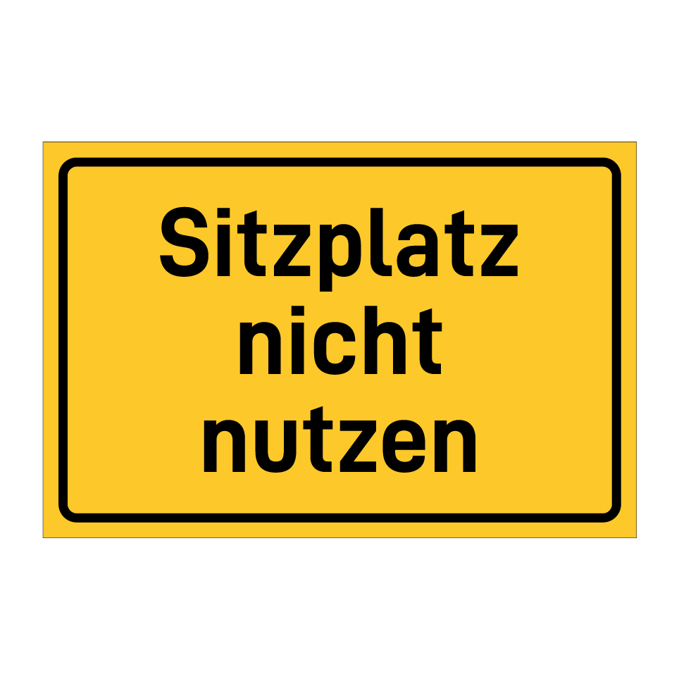 Hinweisschild mit dem Text Sitzplatz nicht nutzen