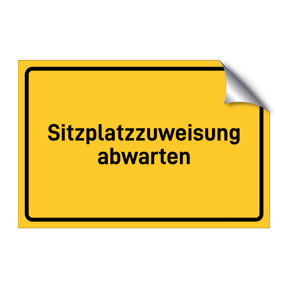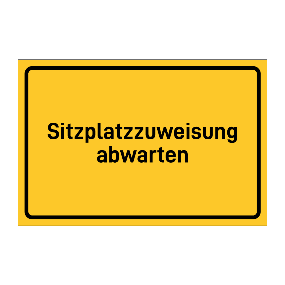 Hinweisschild mit dem Text Sitzplatzzuweisung abwarten