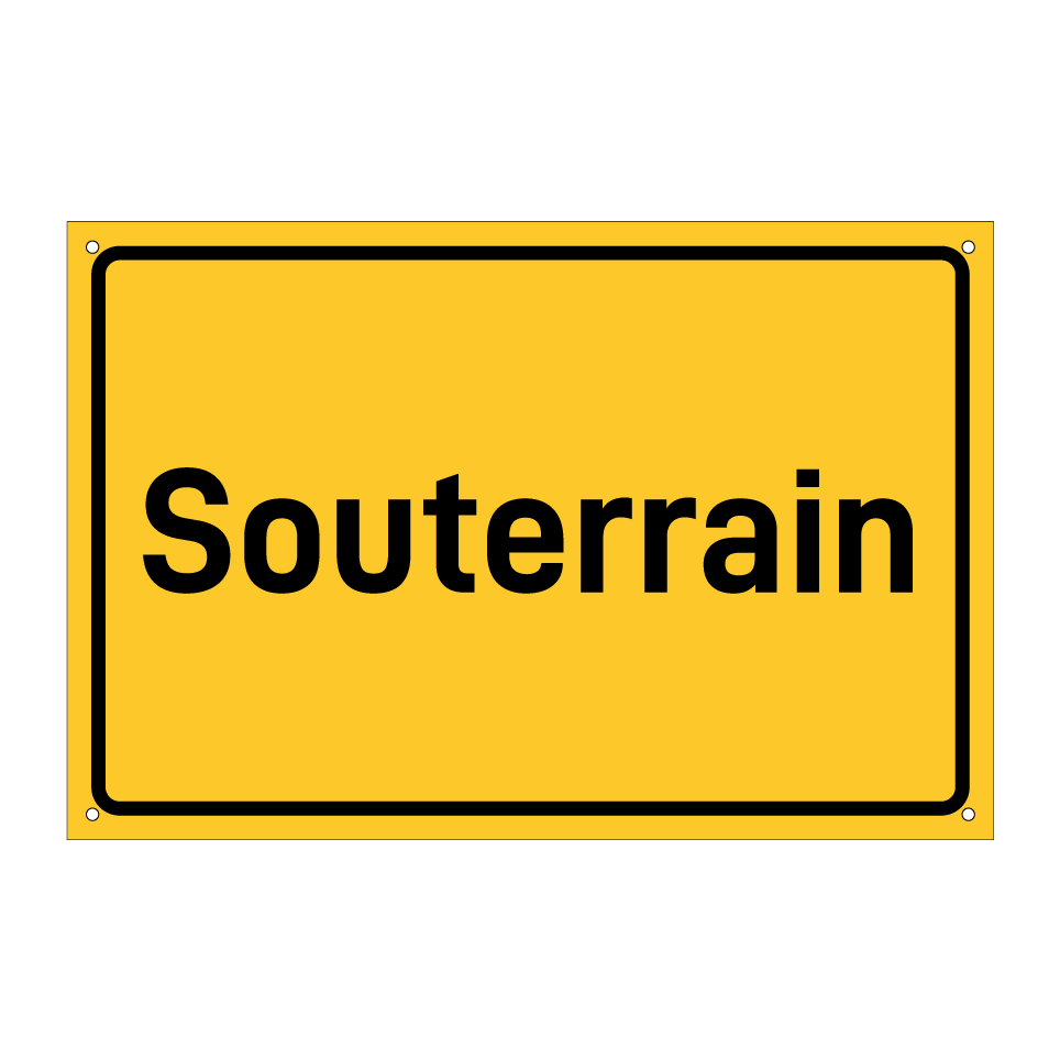 Hinweisschild mit dem Text Souterrain