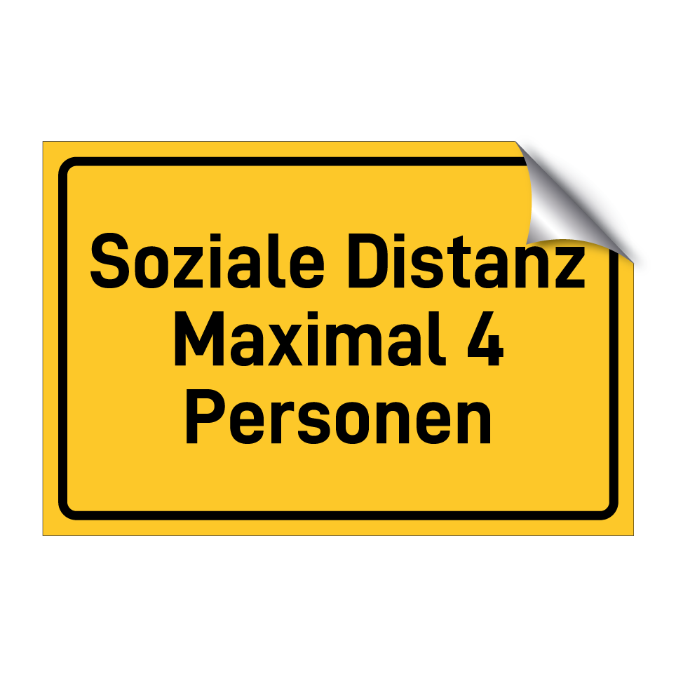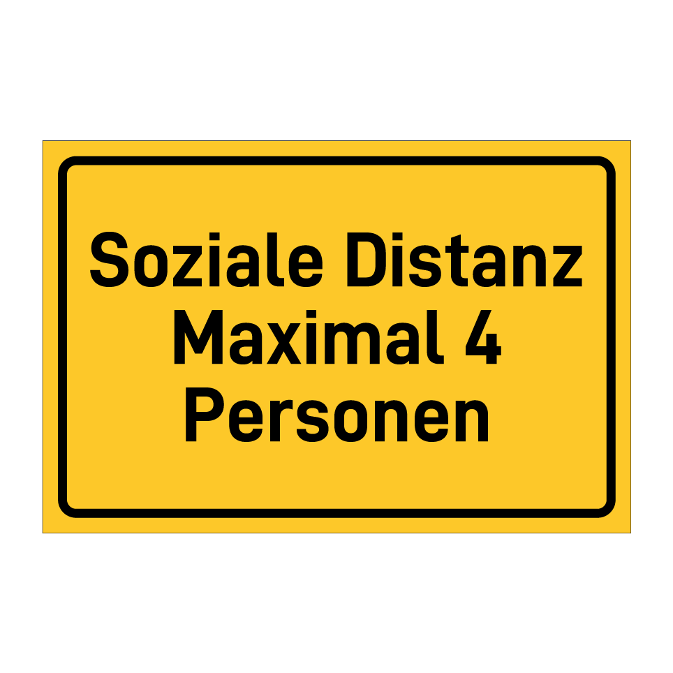 Hinweisschild mit dem Text Soziale Distanz Maximal 4 Personen
