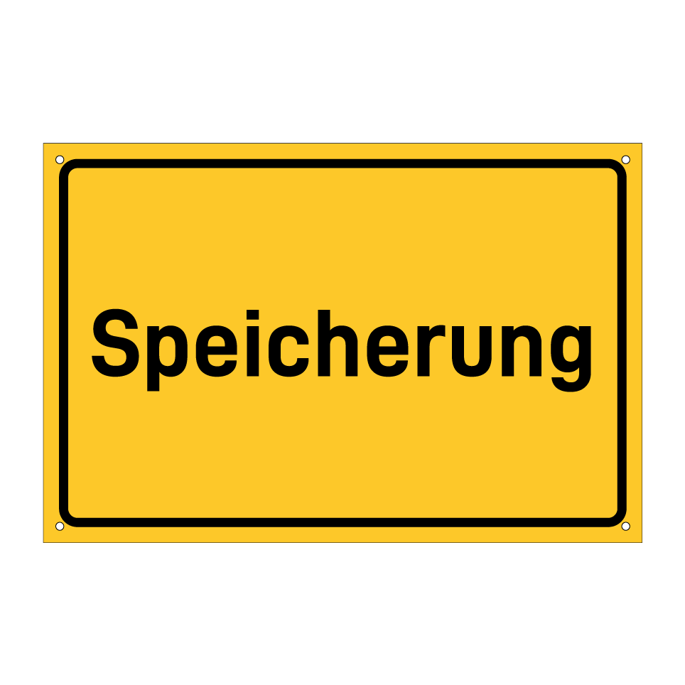 Hinweisschild mit dem Text Speicherung