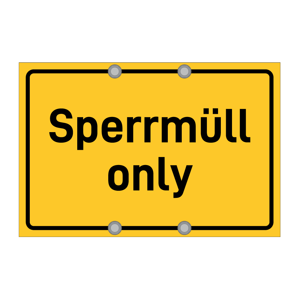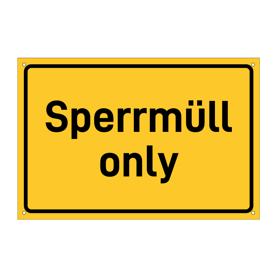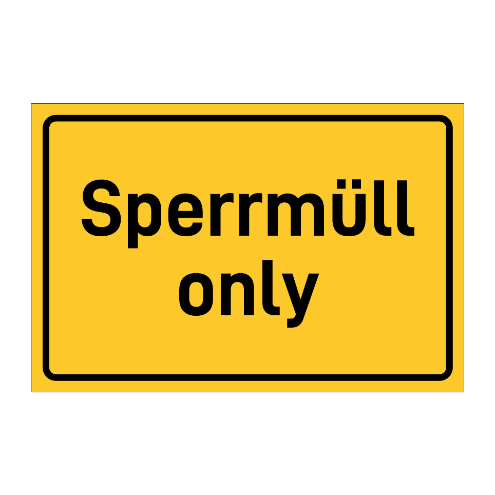 Hinweisschild mit dem Text Sperrmüll only