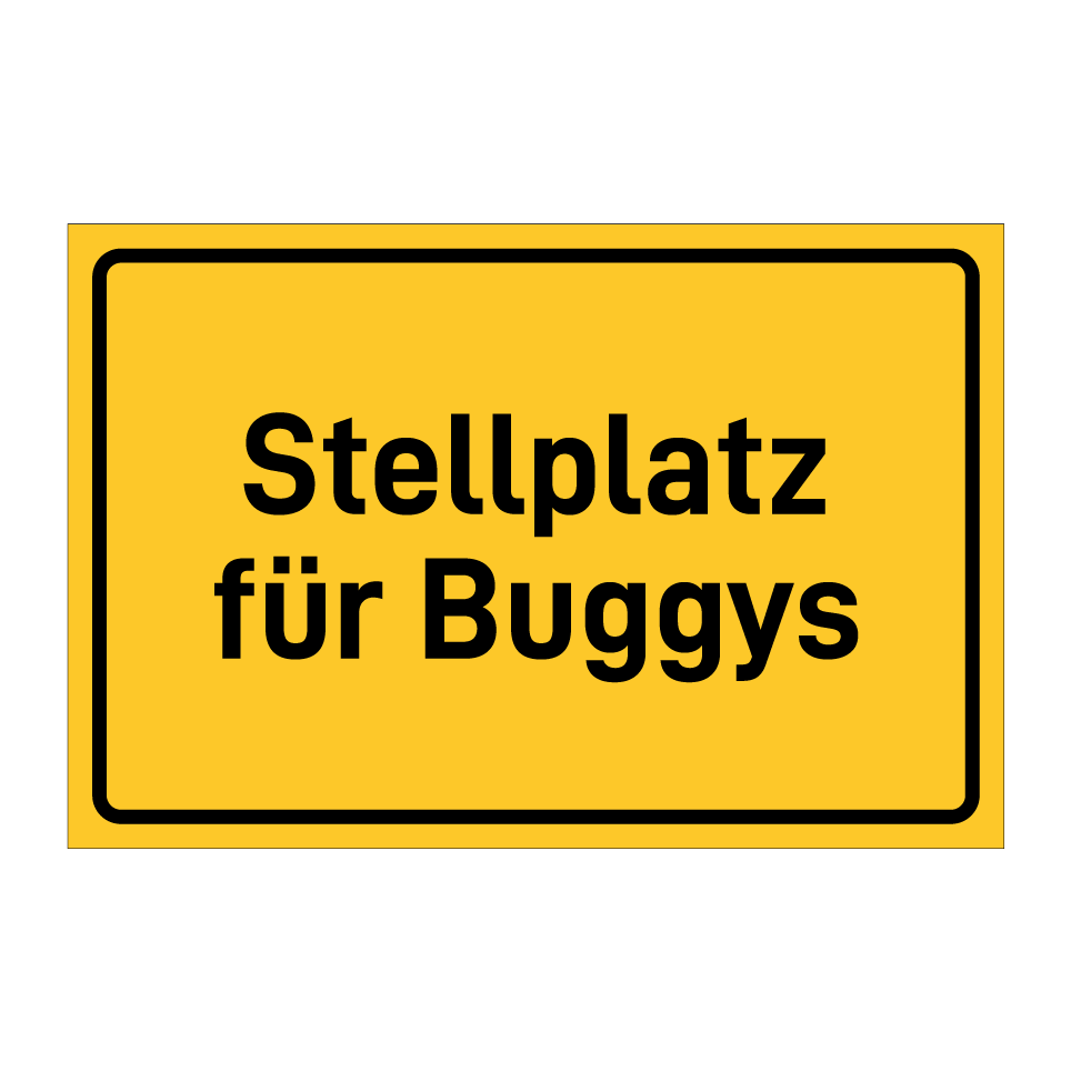 Hinweisschild mit dem Text Stellplatz für Buggys