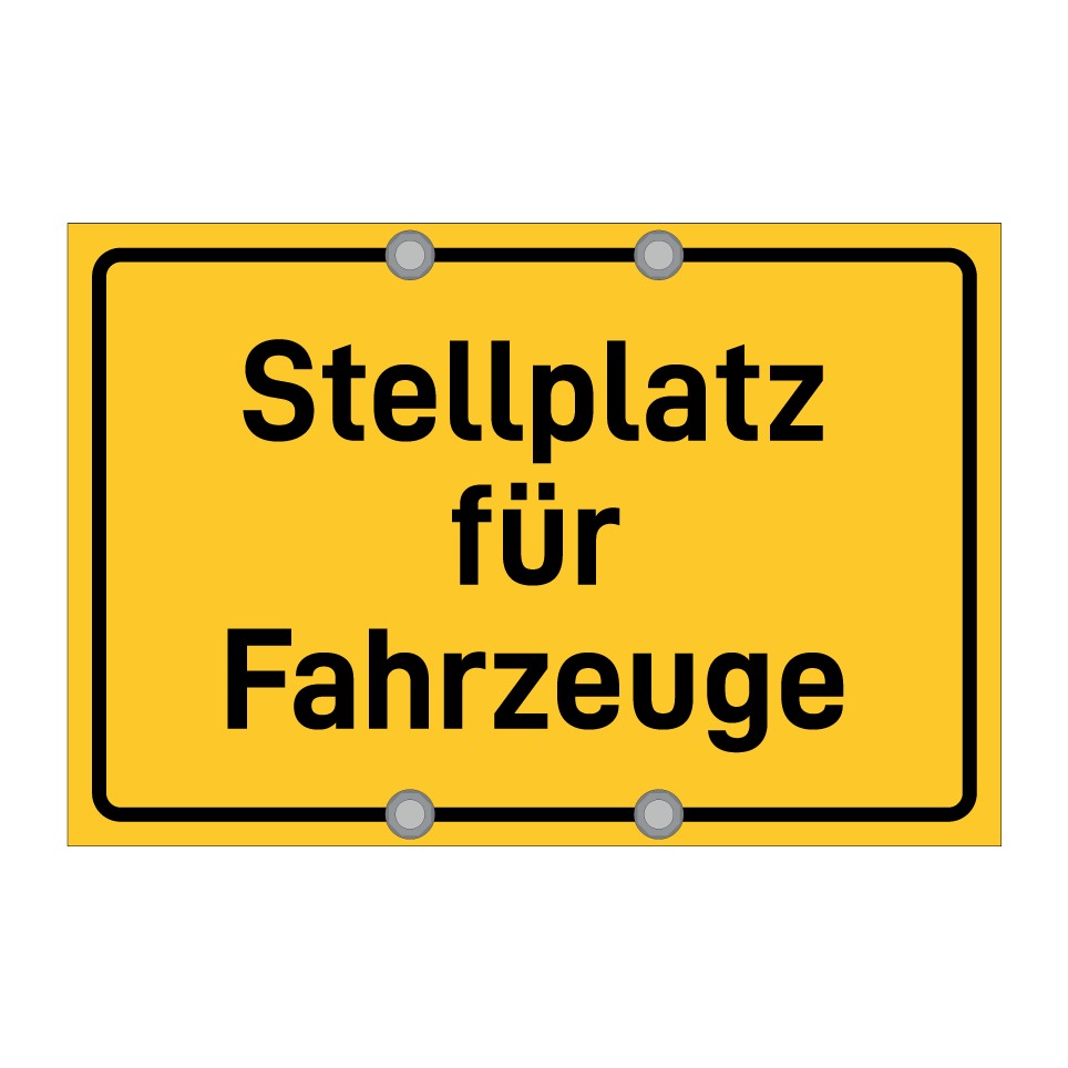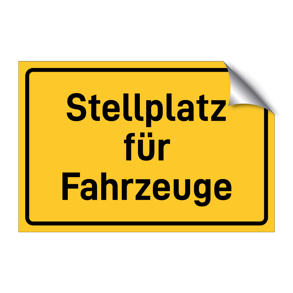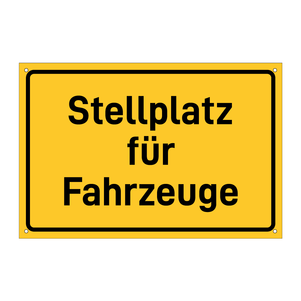 Hinweisschild mit dem Text Stellplatz für Fahrzeuge